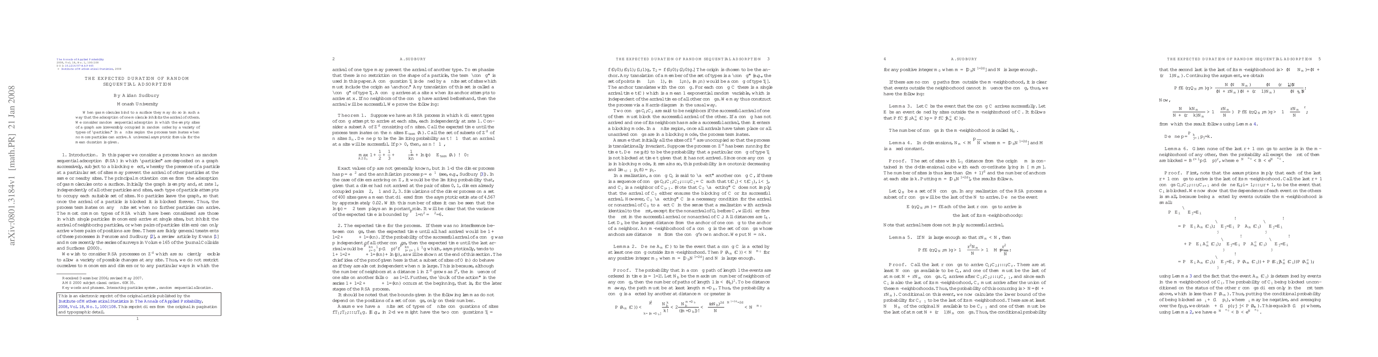 The paper presents detailed mathematical proofs and lemmas to characterize the expected duration of random sequential adsorption, contributing novel insights into stochastic processes on graphs.
