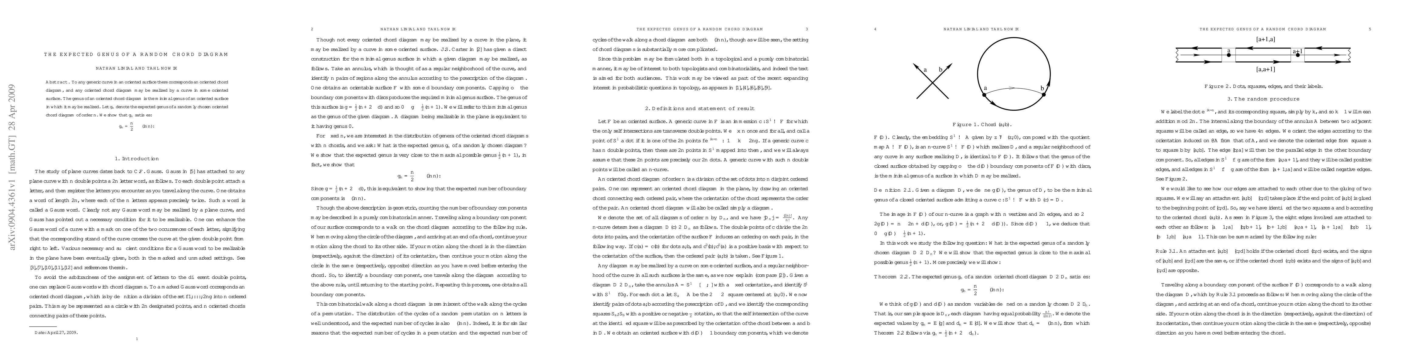This research investigates the expected genus of randomly chosen oriented chord diagrams, showing that for a diagram of order n, its expected genus g_n follows the relation g_n = n/2 - Theta(ln n).
