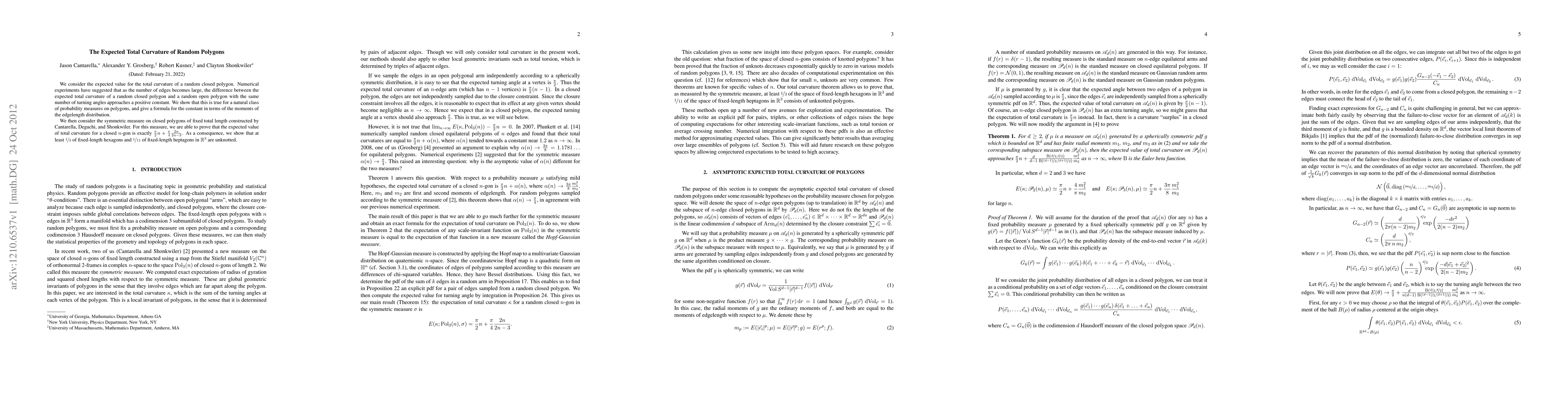 Researchers found that as polygons get larger, their expected total curvature approaches a constant value related to the distribution of edge lengths. For specific measures on closed polygons, they calculated exact values for total curvature, revealing unexpected properties of certain polygon types.