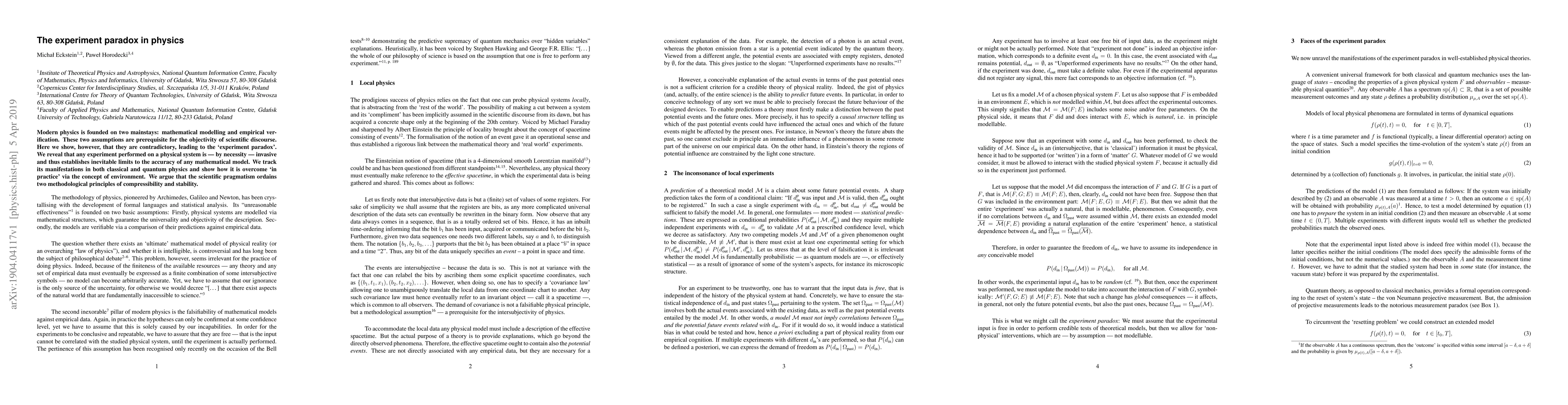 Modern physics is founded on two mainstays: mathematical modelling and empirical verification. These two assumptions are prerequisite for the objectivity of scientific discourse. Here we show, however, that they are contradictory, leading to the `experiment paradox'. We reveal that any experiment performed on a physical system is - by necessity - invasive and thus establishes inevitable limits to the accuracy of any mathematical model. We track its manifestations in both classical and quantum physics and show how it is overcome `in practice' via the concept of environment. We argue that the scientific pragmatism ordains two methodological principles of compressibility and stability.