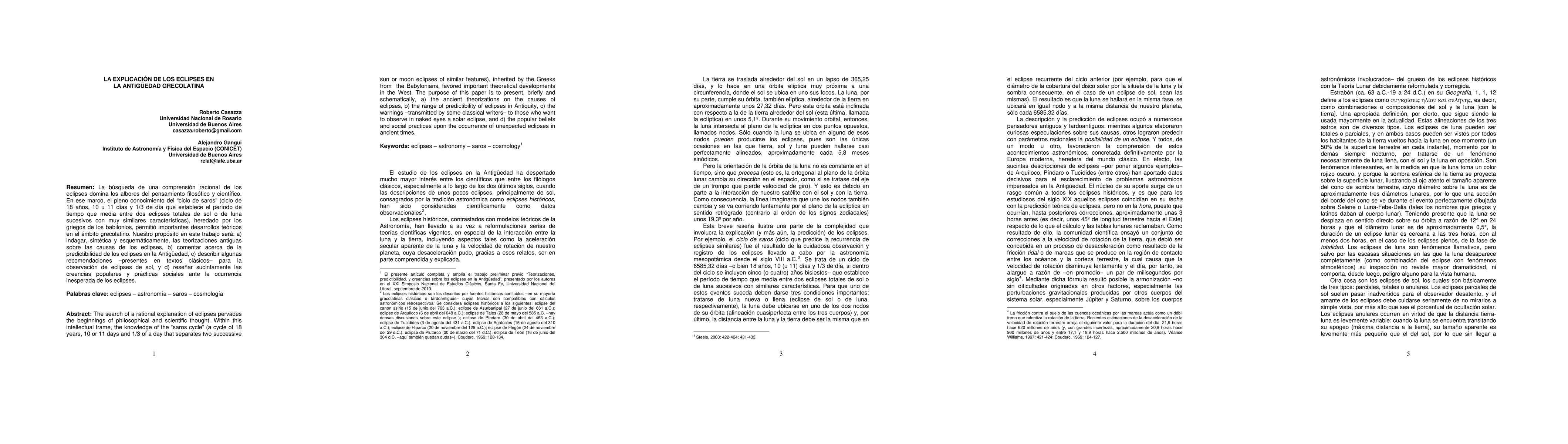 The search of a rational explanation of eclipses pervades the beginnings of philosophical and scientific thought. Within this intellectual frame, the knowledge of the "saros cycle" (a cycle of 18 years, 10 or 11 days and 1/3 of a day that separates two successive sun or moon eclipses of similar features), inherited by the Greeks from the Babylonians, favored important theoretical developments in the West. The purpose of this paper is to present, briefly and schematically, a) the ancient theorizations on the causes of eclipses, b) the range of predictability of eclipses in Antiquity, c) the warnings -transmitted by some classical writers- to those who want to observe in naked eyes a solar eclipse, and d) the popular beliefs and social practices upon the occurrence of unexpected eclipses in ancient times.