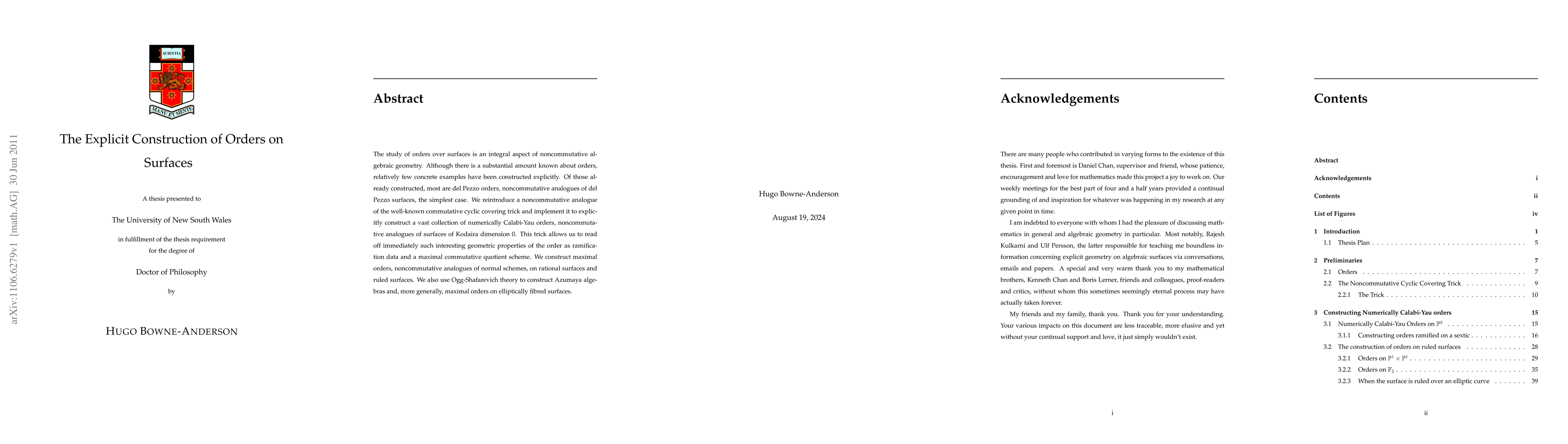 This paper constructs noncommutative analogues of numerically Calabi-Yau surfaces using a noncommutative cyclic covering trick, and develops maximal orders on rational, ruled, and elliptically fibred surfaces, leveraging Ogg-Shafarevich theory for Azumaya algebras.