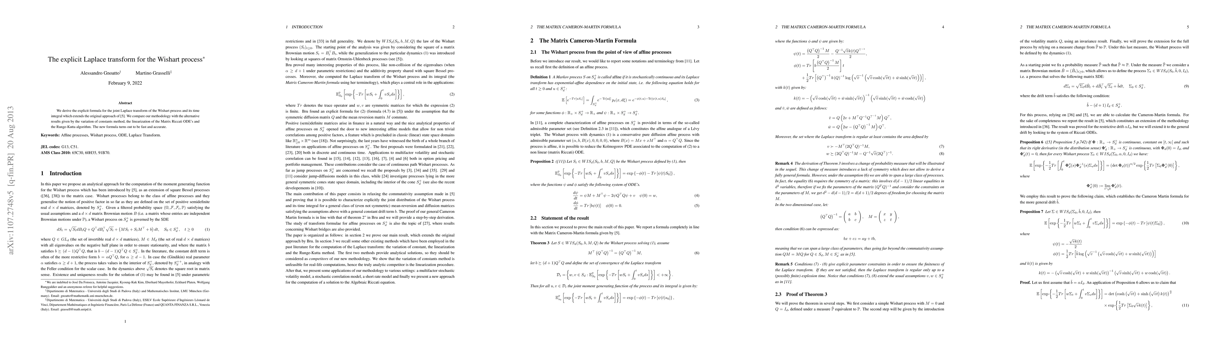 This paper derives an explicit formula for the joint Laplace transform of the Wishart process, offering a fast and accurate method for analyzing this stochastic process.