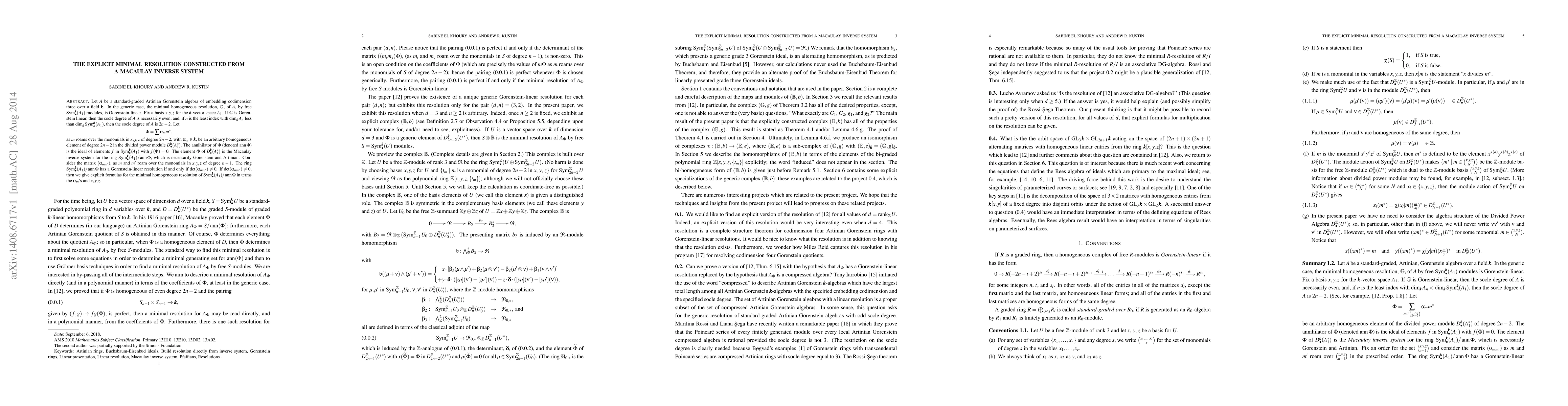 This is the second paper in a series of three papers. In the first paper of the series, "Artinian Gorenstein algebras with linear resolutions", (arXiv:1306.2523, J. of Algebra, to appear) we prove that it is possible to give the minimal resolution of the rings from the title in terms of the coefficients of the corresponding Macaulay inverse system. In this context, the word "give" means, "give in a polynomial manner". The first paper in the series proves, essentially, an existence theorem. The second and third papers in the series construct the explicit formulas for the resolution. The present paper is concerned with Artinian Gorenstein algebras of embedding codimension three. In the third paper, "The structure of Gorenstein-linear resolutions of Artinian algebras", the embedding codimension is arbitrary.