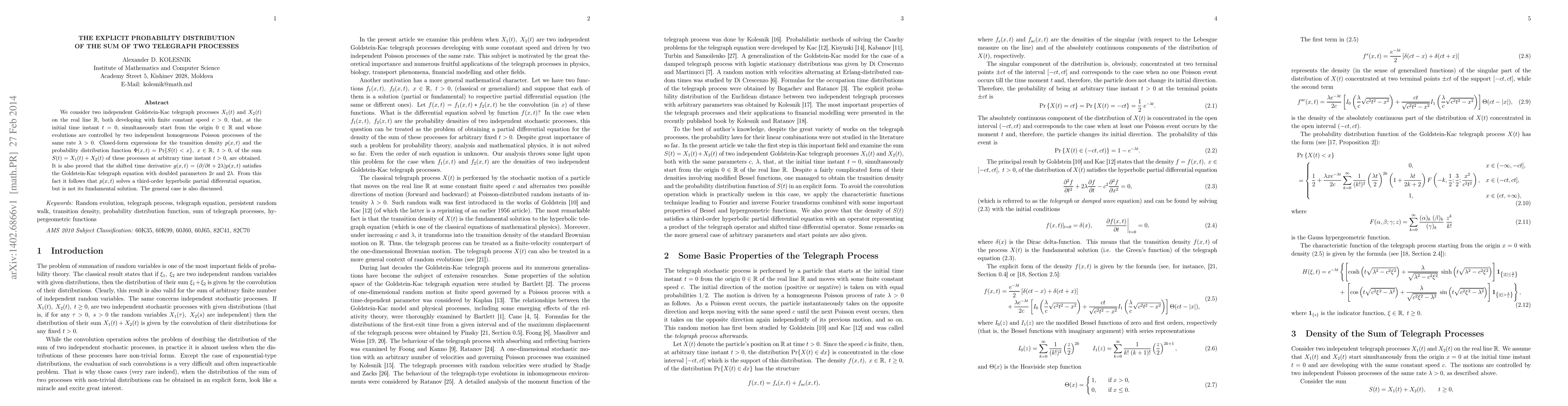 We consider two independent Goldstein-Kac telegraph processes $X_1(t)$ and