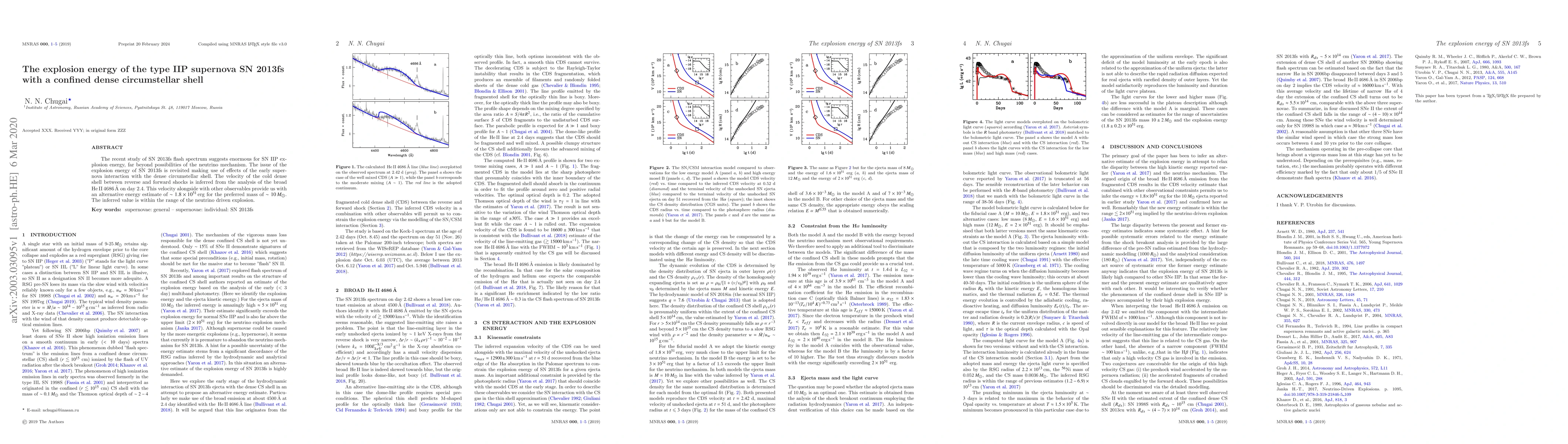 Researchers re-examine the explosion energy of SN 2013fs using data from a dense circumstellar shell, estimating an energy release of ~1.8 imes10^{51} ext{ erg}, within the range of neutrino-driven explosions.