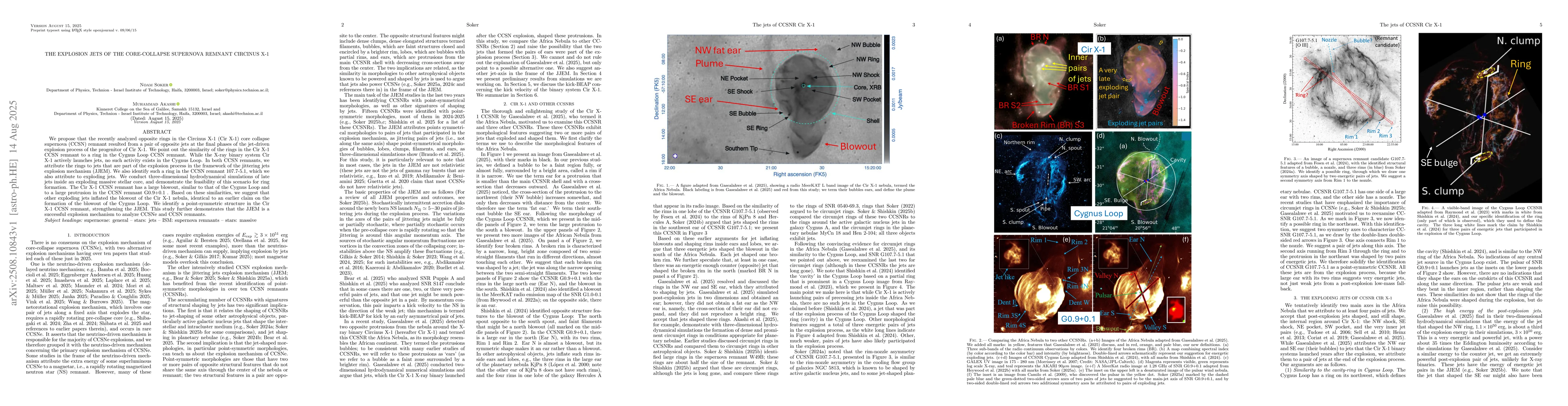 We propose that the recently analyzed opposite rings in the Circinus X-1 (Cir X-1) core collapse supernova (CCSN) remnant resulted from a pair of opposite jets at the final phases of the jet-driven explosion process of the progenitor of Cir X-1. We point out the similarity of the rings in the Cir X-1 CCSN remnant to a ring in the Cygnus Loop CCSN remnant. While the X-ray binary system Cir X-1 actively launches jets, no such activity exists in the Cygnus Loop. In both CCSN remnants, we attribute the rings to jets that are part of the explosion process in the framework of the jittering jets explosion mechanism (JJEM). We also identify such a ring in the CCSN remnant 107.7-5.1, which we also attribute to exploding jets. We conduct three-dimensional hydrodynamical simulations of late jets inside an exploding massive stellar core, and demonstrate the feasibility of this scenario for ring formation. The Cir X-1 CCSN remnant has a large blowout, similar to that of the Cygnus Loop and to a large protrusion in the CCSN remnant G0.9+0.1 . Based on these similarities, we suggest that other exploding jets inflated the blowout of the Cir X-1 nebula, identical to an earlier claim on the formation of the blowout of the Cygnus Loop. We identify a point-symmetric structure in the Cir X-1 CCSN remnant, strengthening the JJEM. This study further demonstrates that the JJEM is a successful explosion mechanism to analyze CCSNe and CCSN remnants.