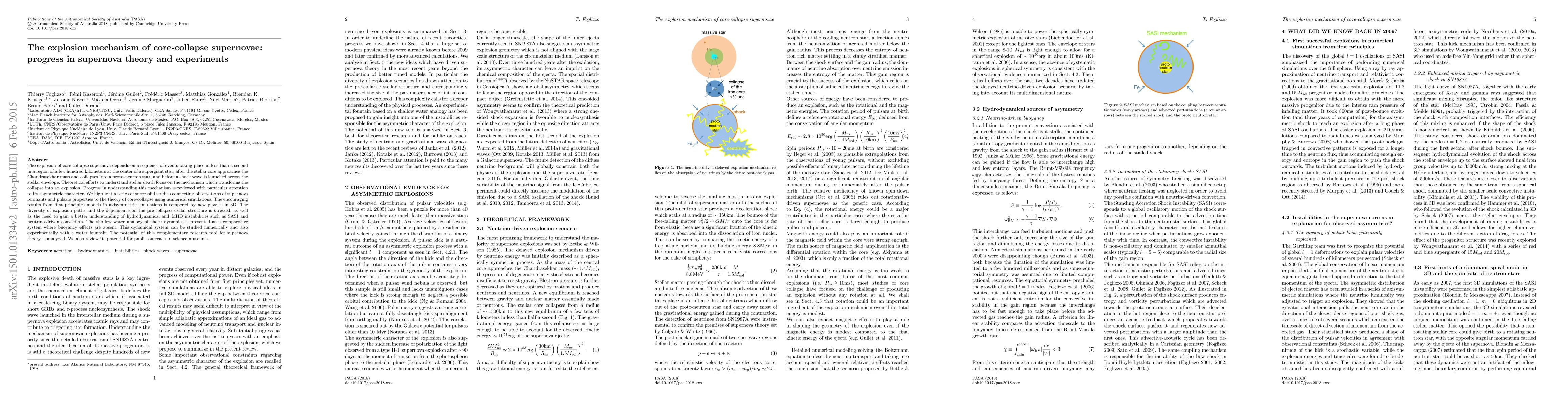 This paper reviews progress in understanding the explosion mechanism of core-collapse supernovae, emphasizing the role of asymmetric dynamics and numerical simulations. It also explores experimental analogies, like water fountains, to study shock dynamics and highlights the potential for public engagement through science outreach.