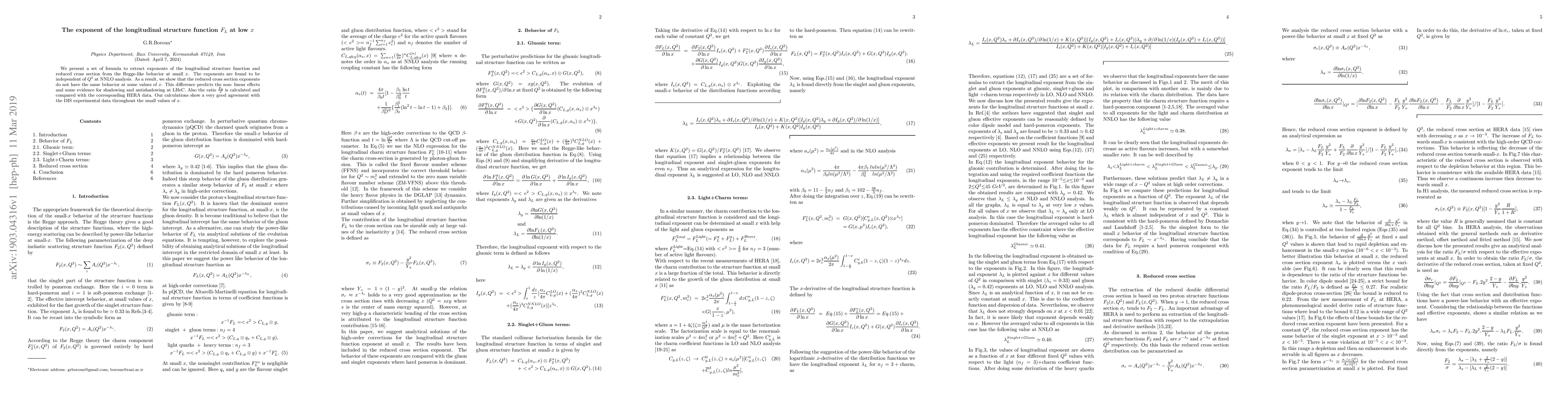 This research extracts exponents for the longitudinal structure function $F_{L}$ using Regge-like behavior at low $x$, demonstrating their independence from $Q^{2}$ in NNLO analysis. It highlights differences in reduced cross section exponents and predicts non-linear effects, including shadowing and antishadowing, with good agreement between calculated ratios $\frac{F_{2}}{\sigma}$ and HERA data.