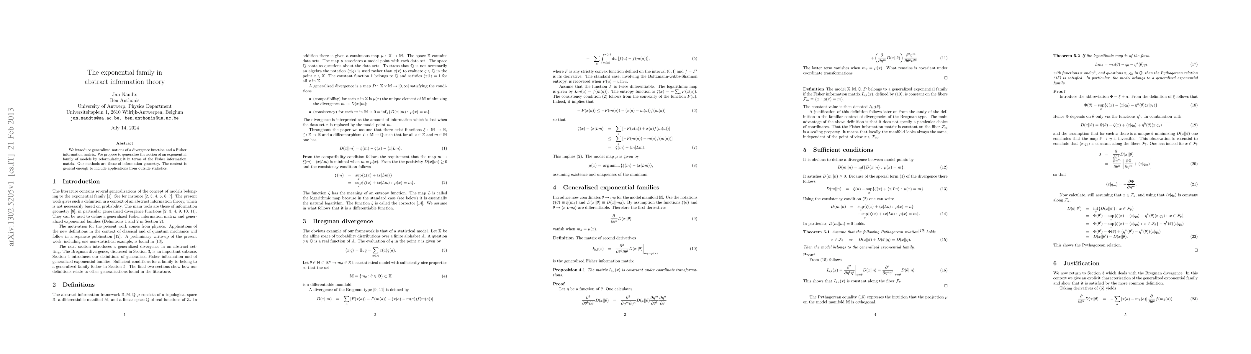 We introduce generalized notions of a divergence function and a Fisher information matrix. We propose to generalize the notion of an exponential family of models by reformulating it in terms of the Fisher information matrix. Our methods are those of information geometry. The context is general enough to include applications from outside statistics.