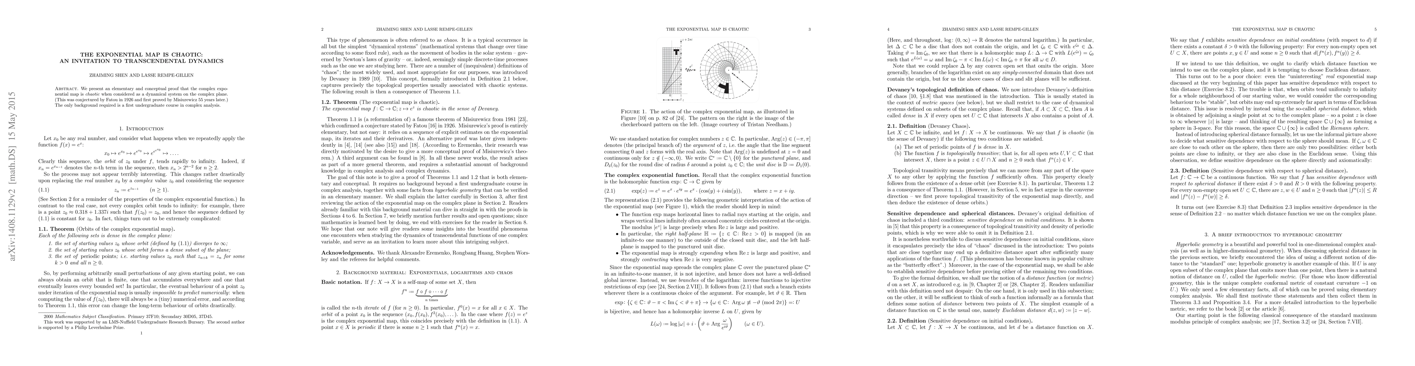 We present an elementary and conceptual proof that the complex exponential map is "chaotic" when considered as a dynamical system on the complex plane. (This result was conjectured by Fatou in 1926 and first proved by Misiurewicz 55 years later.) The only background required is a first undergraduate course in complex analysis.