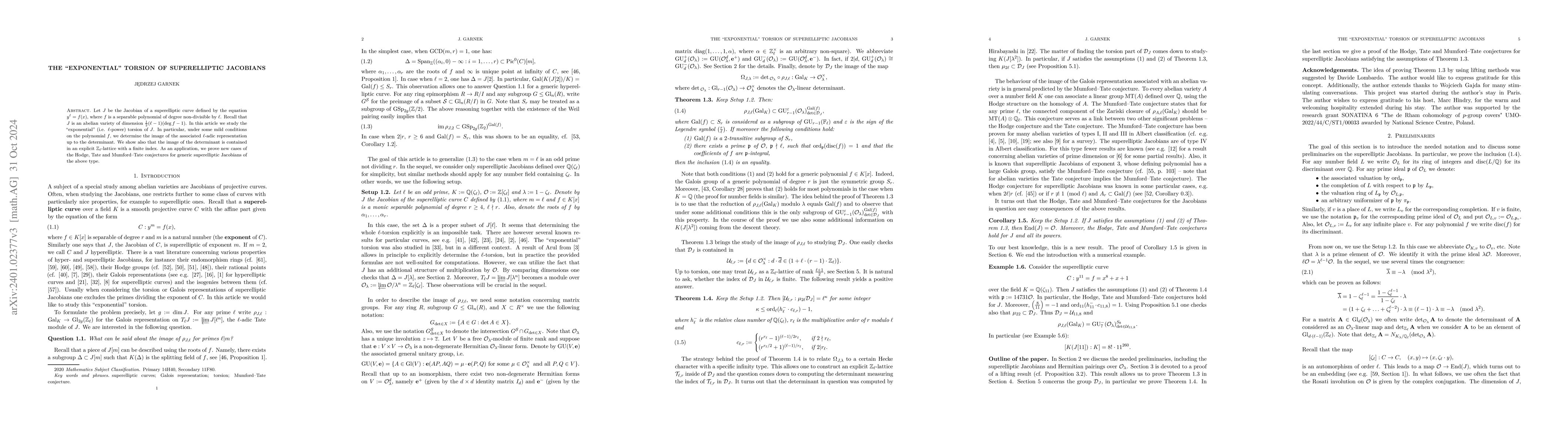 This paper investigates the "exponential" torsion of Jacobians of superelliptic curves defined by $y^{\ell} = f(x)$, determining the image of the associated $\ell$-adic representation up to the determinant. It also proves the Hodge, Tate, and Mumford-Tate conjectures for generic superelliptic Jacobians under mild conditions.