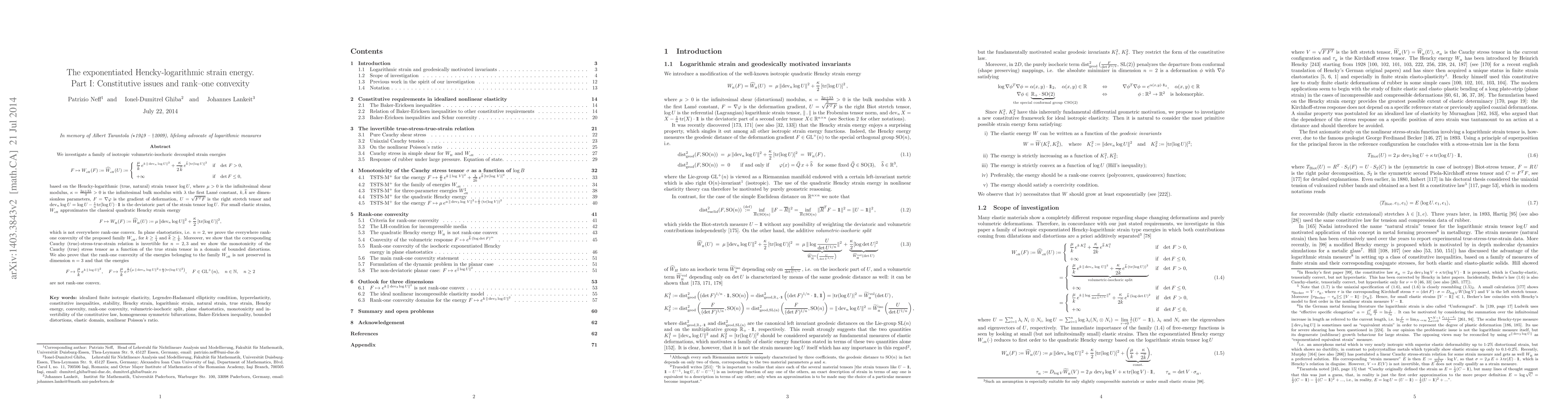 This paper explores a new family of isotropic volumetric-isochoric decoupled strain energies based on the Hencky-logarithmic strain tensor, proving their rank-one convexity in plane elastostatics for specific parameters. It demonstrates the invertibility and monotonicity of the corresponding stress-strain relations in two and three dimensions, while noting the loss of rank-one convexity in three dimensions.