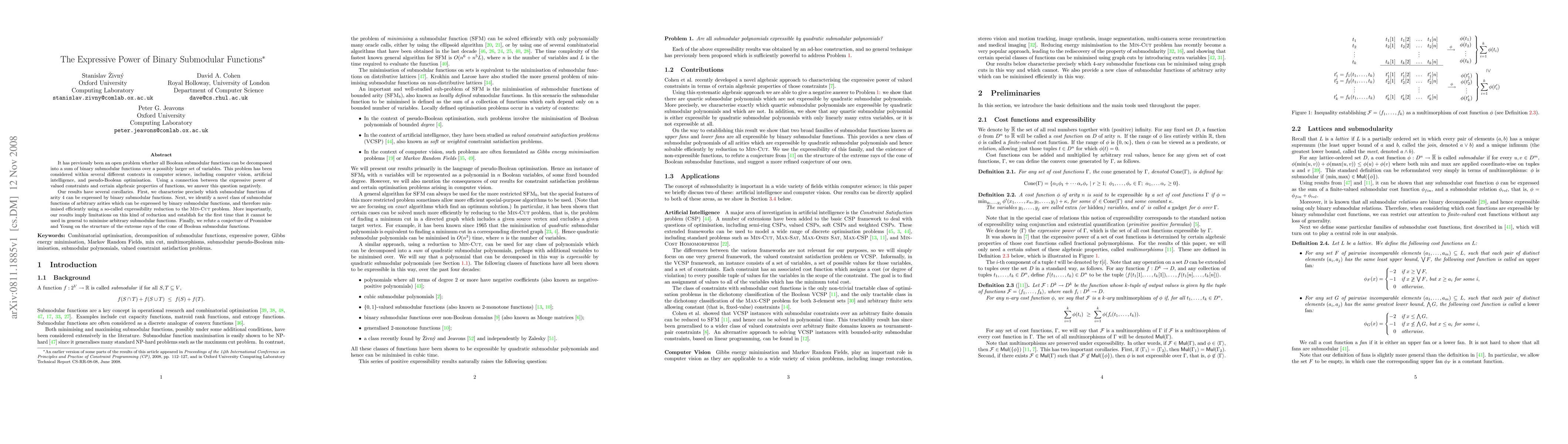 This paper demonstrates that not all Boolean submodular functions can be decomposed into sums of binary submodular functions, establishing limitations on the expressibility reduction to the Min-Cut problem. It also identifies specific classes of submodular functions that can be efficiently minimized and refutes a conjecture on the structure of Boolean submodular functions.