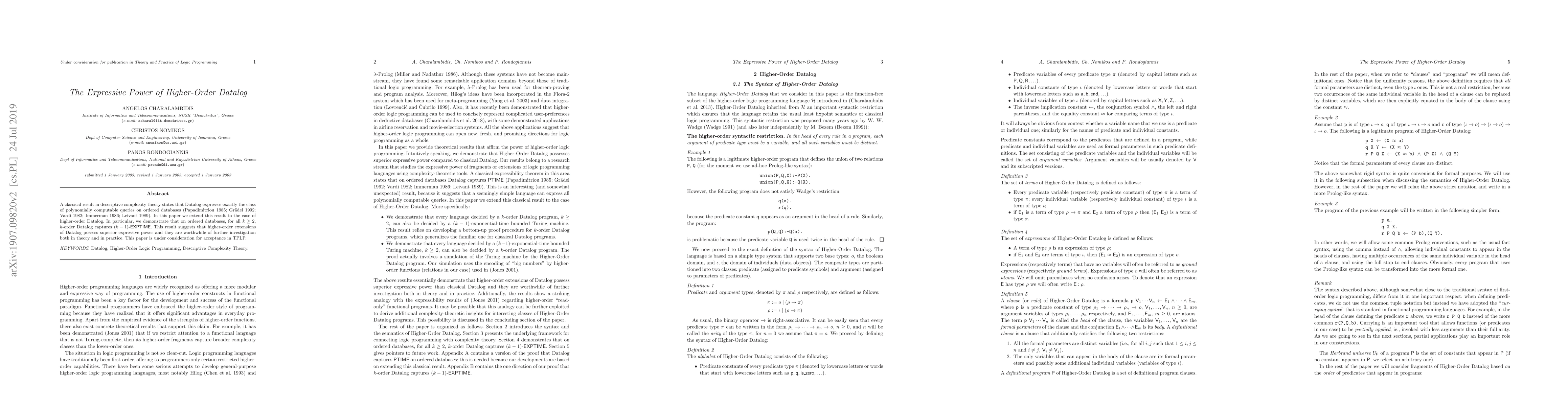 This paper extends classical Datalog to higher-order, showing that $k$-order Datalog captures $(k-1)$-EXPTIME on ordered databases, indicating enhanced expressive power. The findings suggest further theoretical and practical exploration of higher-order Datalog extensions.