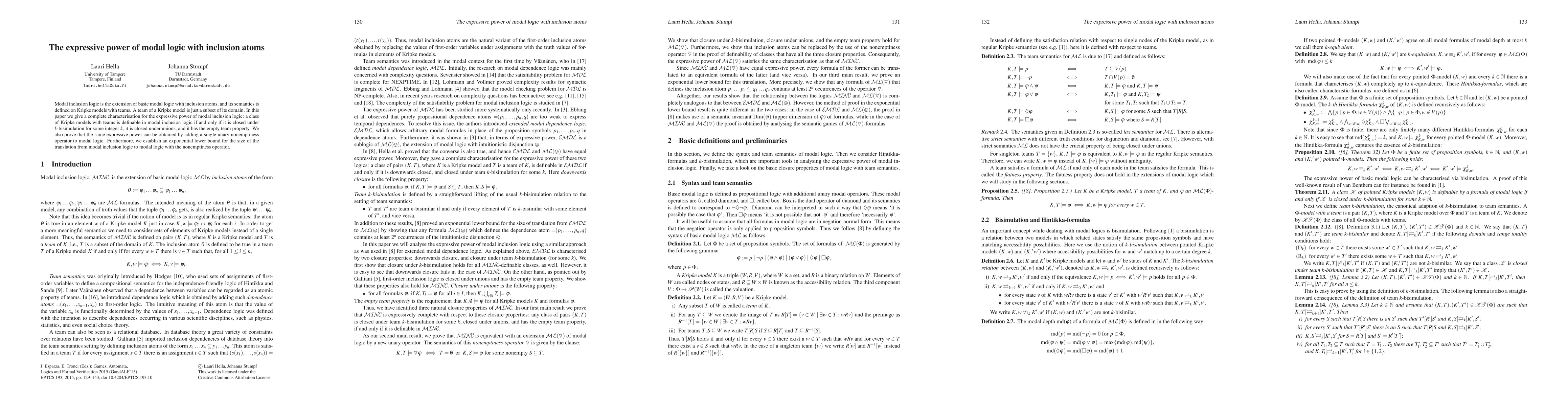This paper characterizes the expressive power of modal inclusion logic, showing it can define classes of Kripke models closed under k-bisimulation, unions, and the empty team property. It also demonstrates that this expressive power is equivalent to modal logic augmented with a single unary nonemptiness operator, with an exponential lower bound for translations between the two logics.