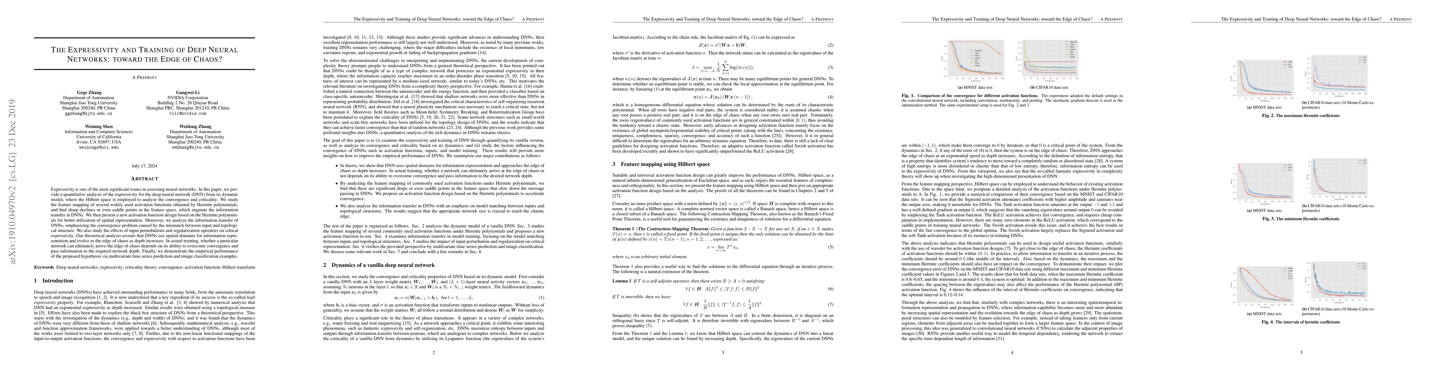 This paper quantitatively analyzes the expressivity of deep neural networks (DNNs) using a dynamic model and Hilbert space, revealing criticality issues and stagnation in information transfer. It proposes a new activation function based on Hermite polynomials to improve spatial representation and discusses the convergence challenges tied to network depth, ultimately showing that DNNs tend towards the edge of chaos as depth increases, demonstrated through multivariate time series prediction and image classification.