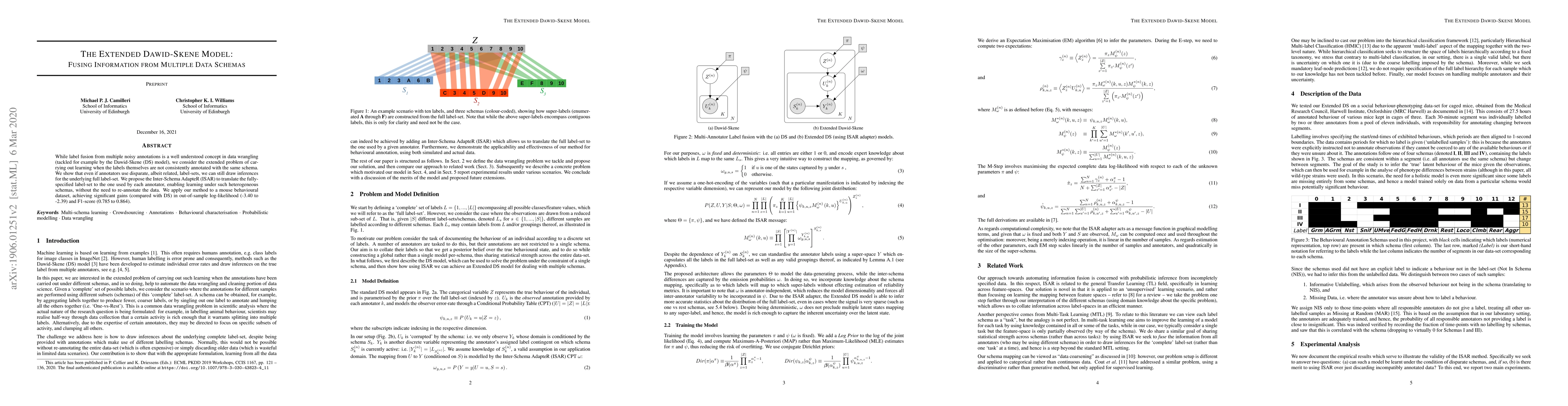 While label fusion from multiple noisy annotations is a well understood concept in data wrangling (tackled for example by the Dawid-Skene (DS) model), we consider the extended problem of carrying out learning when the labels themselves are not consistently annotated with the same schema. We show that even if annotators use disparate, albeit related, label-sets, we can still draw inferences for the underlying full label-set. We propose the Inter-Schema AdapteR (ISAR) to translate the fully-specified label-set to the one used by each annotator, enabling learning under such heterogeneous schemas, without the need to re-annotate the data. We apply our method to a mouse behavioural dataset, achieving significant gains (compared with DS) in out-of-sample log-likelihood (-3.40 to -2.39) and F1-score (0.785 to 0.864).