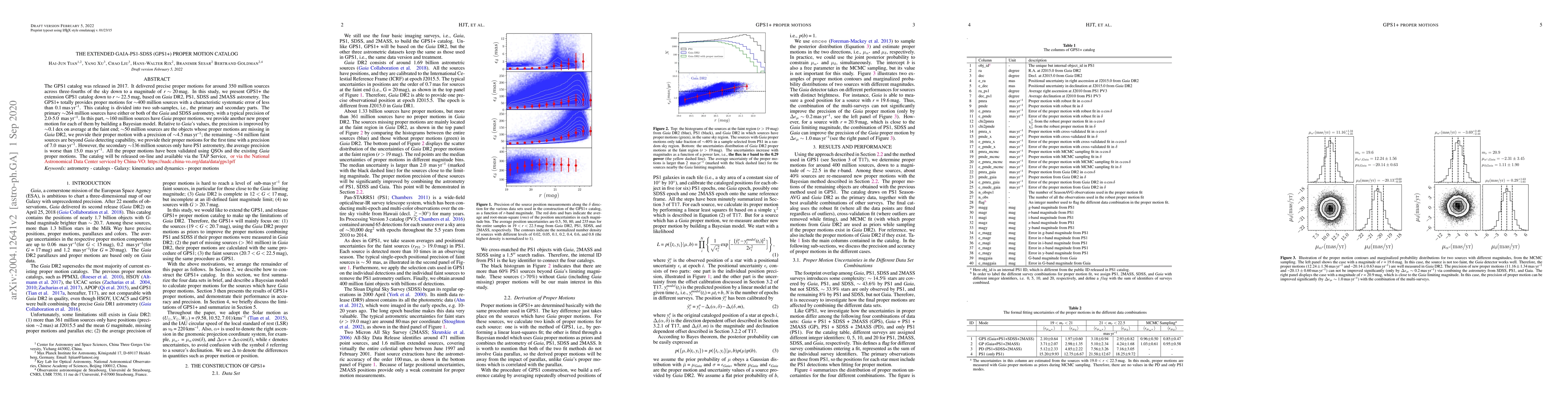 The GPS1+ catalog extends the 2017 GPS1 proper motion catalog, providing precise proper motions for approximately 400 million sources down to $r\sim22.5$\,mag. It combines Gaia DR2, PS1, SDSS, and 2MASS astrometry, with improved precision for faint sources and first-time proper motions for many beyond Gaia's detection limit.