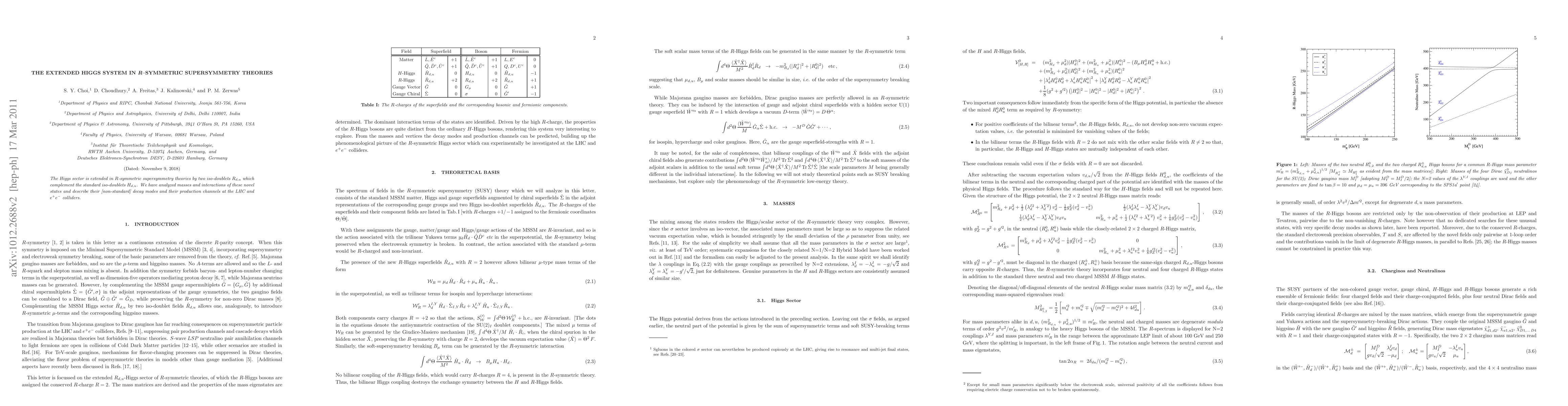 The Higgs sector is extended in $R$-symmetric supersymmetry theories by two iso-doublets $R_{d,u}$ which complement the standard iso-doublets $H_{d,u}$. We have analyzed masses and interactions of these novel states and describe their [non-standard] decay modes and their production channels at the LHC and $e^+e^-$ colliders.