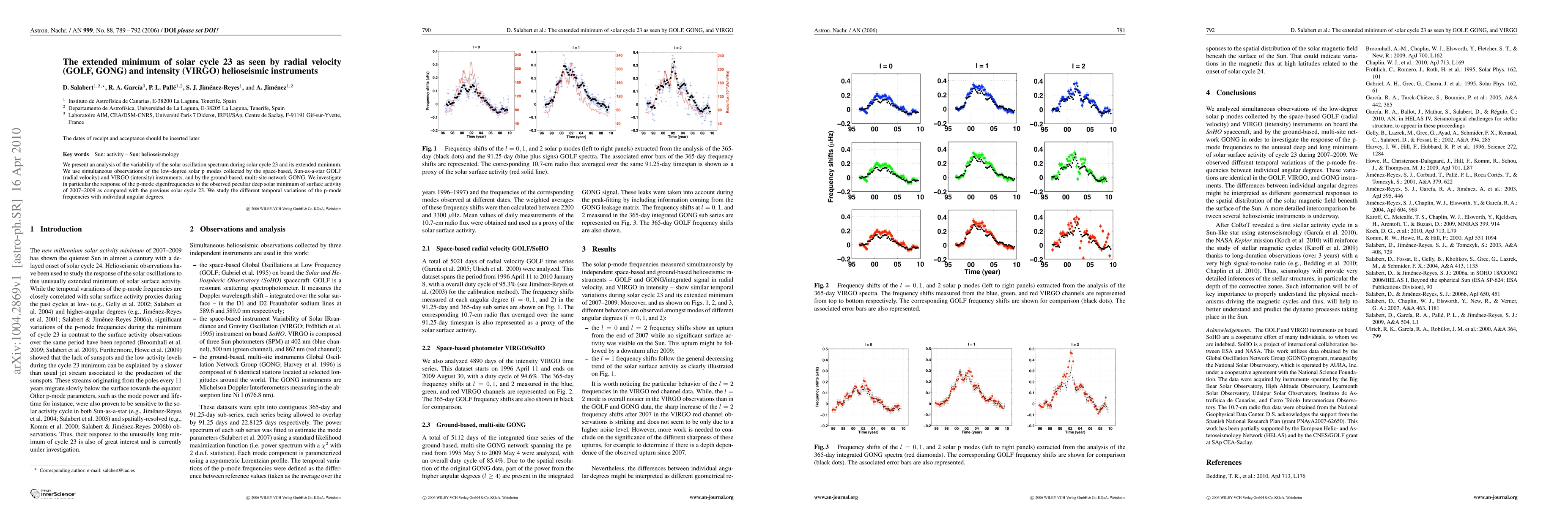 We present an analysis of the variability of the solar oscillation spectrum during solar cycle 23 and its extended minimum. We use simultaneous observations of the low-degree solar p modes collected by the space-based, Sun-as-a-star GOLF (radial velocity) and VIRGO (intensity) instruments, and by the ground-based, multi-site network GONG. We investigate in particular the response of the p-mode eigenfrequencies to the observed peculiar deep solar minimum of surface activity of 2007-2009 as compared with the previous solar cycle 23. We study the different temporal variations of the p-mode frequencies with individual angular degrees.
