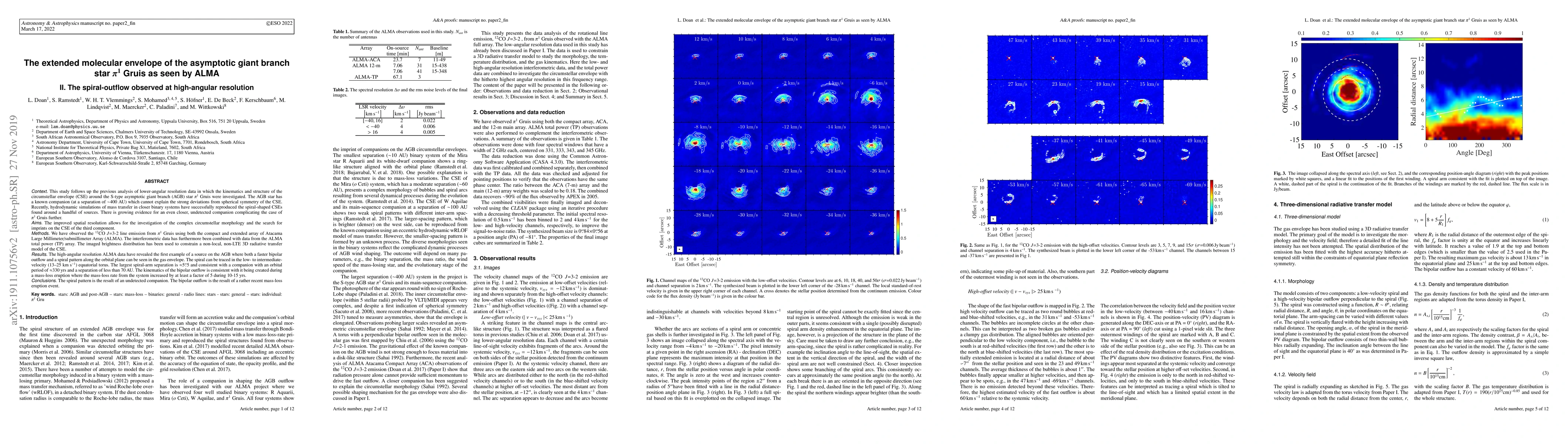 The AGB star $\pi^{1}$ Gruis has a known companion (at a separation of ~400 AU) which cannot explain the strong deviations from the spherical symmetry of the CSE. Recently, hydrodynamic simulations of mass transfer in closer binary systems have successfully reproduced the spiral-shaped CSEs found around a handful of sources. There is growing evidence for an even closer, undetected companion complicating the case of $\pi^{1}$ Gruis further. The improved spatial resolution allows for the investigation of the complex circumstellar morphology and the search for imprints on the CSE of the third component. We have observed the 12CO J=3-2 line emission from $\pi^{1}$ Gruis using both the compact and extended array of Atacama Large Millimeter/submillimeter Array (ALMA). The interferometric data has furthermore been combined with data from the ALMA total power (TP) array. The imaged brightness distribution has been used to constrain a non-local, non-LTE 3D radiative transfer model of the CSE. The high-angular resolution ALMA data have revealed the first example of a source on the AGB where both a faster bipolar outflow and a spiral pattern along the orbital plane can be seen in the gas envelope. The spiral can be traced in the low- to intermediate velocity, from 13 to 25 km s$^{-1}$, equatorial torus. The largest spiral-arm separation is $\approx$5".5 and consistent with a companion with an orbital period of $\approx$330 yrs and a separation of less than 70 AU. The kinematics of the bipolar outflow is consistent with it being created during a mass-loss eruption where the mass-loss rate from the system increased by at least a factor of 5 during 10-15 yrs. The spiral pattern is the result of an undetected companion. The bipolar outflow is the result of a rather recent mass-loss eruption event.