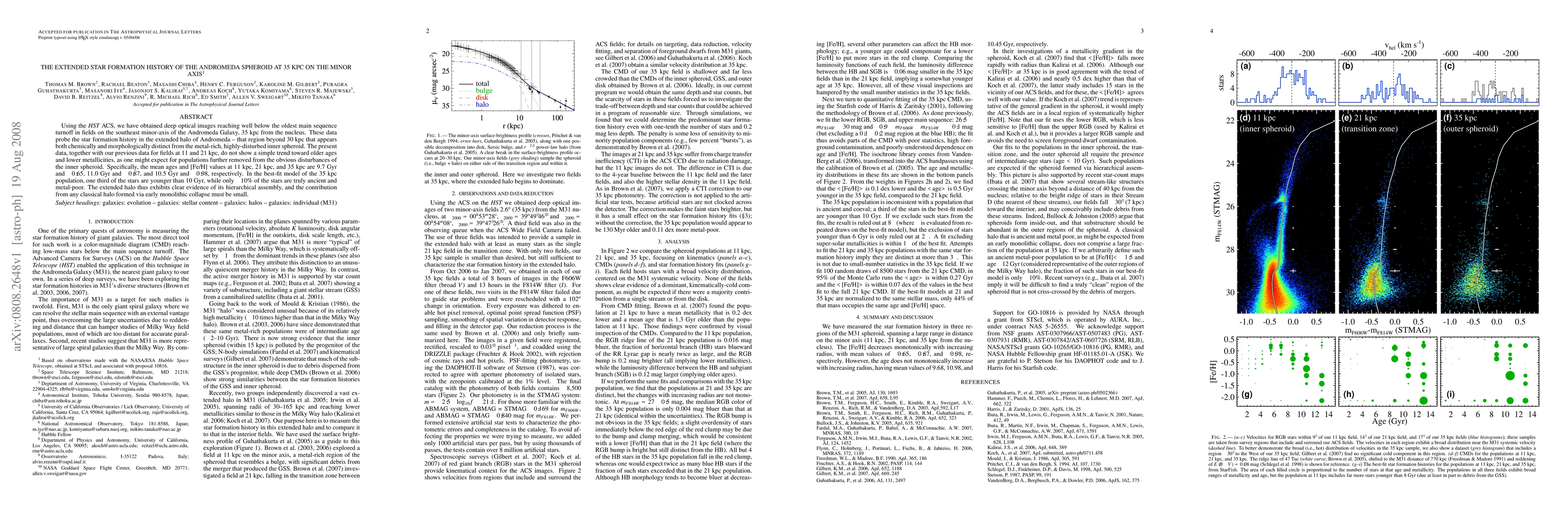 This paper uses HST ACS data to investigate the star formation history in the extended halo of the Andromeda Galaxy, 35 kpc from the nucleus. Contrary to expectations, the star formation history shows no simple trend toward older ages and lower metallicities, indicating a complex hierarchical assembly rather than a classical halo formation.