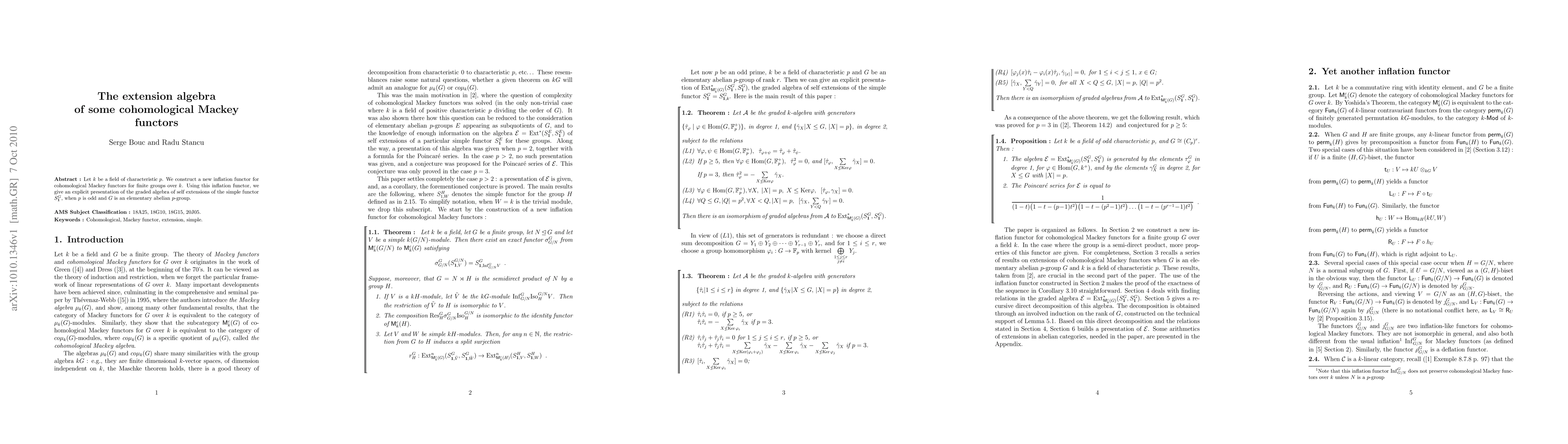 This paper constructs a new inflation functor for cohomological Mackey functors to study self-extensions of simple functors over finite fields, with implications for understanding group representations.