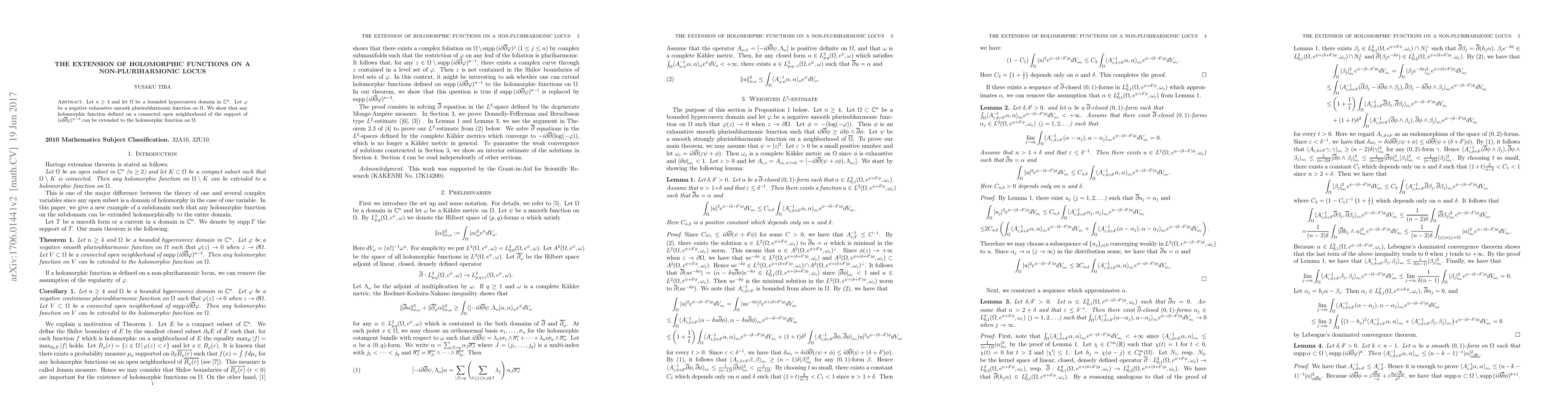 Let $n \geq 4$ and let $\Omega$ be a bounded hyperconvex domain in $\mathbb{C}^{n}$. Let $\varphi$ be a negative exhaustive smooth plurisubharmonic function on $\Omega$. We show that any holomorphic function defined on a connected open neighborhood of the support of $(i\partial \overline{\partial}\varphi)^{n-3}$ can be extended to the holomorphic function on $\Omega$.