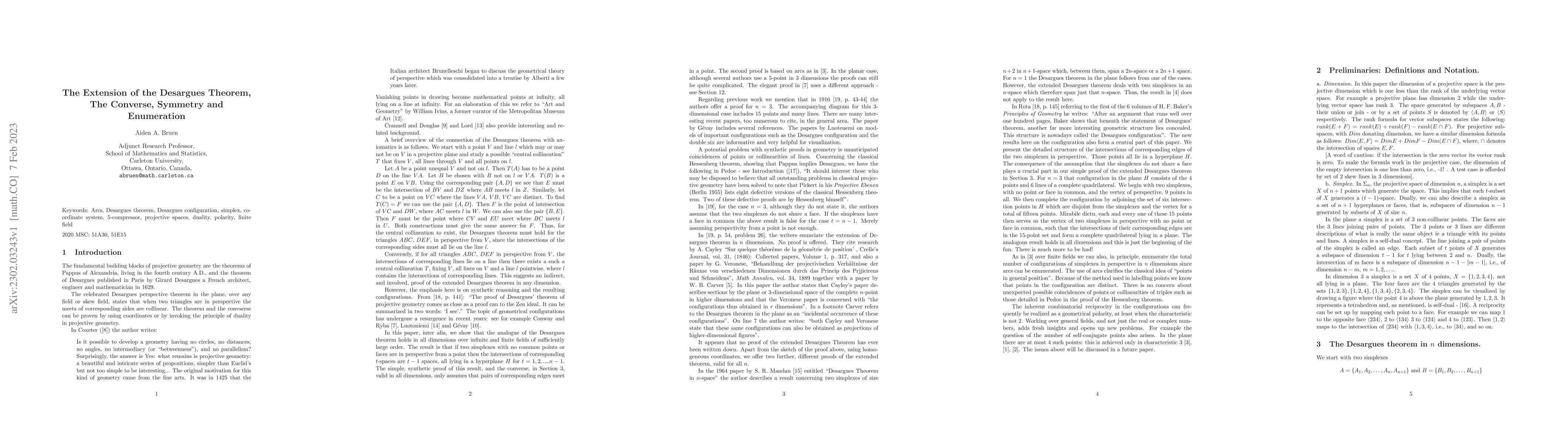 This work extends previous research by A.A. Bruen, T.C. Bruen, and J.M. McQuillan, providing a comprehensive treatment of the Desargues Theorem and its converse in all dimensions, along with novel insights into the fractal-like properties of Desargues configurations.