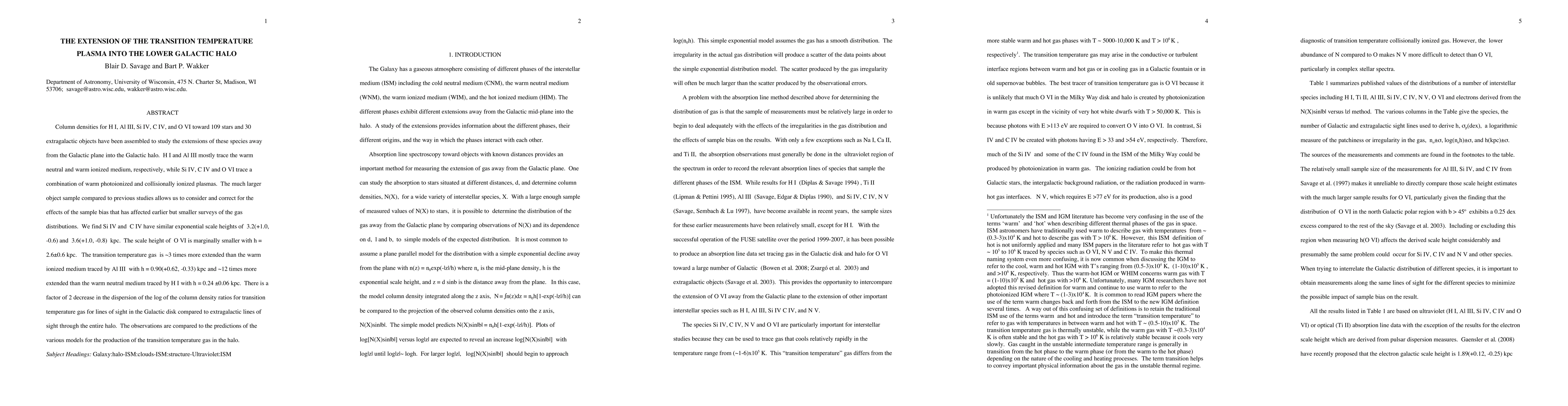 Column densities for H I, Al III, Si IV, C IV, and O VI toward 109 stars and 30 extragalactic objects have been assembled to study the extensions of these species away from the Galactic plane into the Galactic halo. H I and Al III mostly trace the warm neutral and warm ionized medium, respectively, while Si IV, C IV and O VI trace a combination of warm photoionized and collisionally ionized plasmas. The much larger object sample compared to previous studies allows us to consider and correct for the effects of the sample bias that has affected earlier but smaller surveys of the gas distributions. We find Si IV and C IV have similar exponential scale heights of 3.2(+1.0, -0.6) and 3.6(+1.0, -0.8) kpc. The scale height of O VI is marginally smaller with h = 2.6+/- 0.6 kpc. The transition temperature gas is ~3 times more extended than the warm ionized medium traced by Al III with h = 0.90(+0.62, -0.33) kpc and ~12 times more extended than the warm neutral medium traced by H I with h = 0.24 +/- 0.06 kpc. There is a factor of 2 decrease in the dispersion of the log of the column density ratios for transition temperature gas for lines of sight in the Galactic disk compared to extragalactic lines of sight through the entire halo. The observations are compared to the predictions of the various models for the production of the transition temperature gas in the halo. The appendix presents a revision to the electron scale height proposed by Gaensler et al. (2008) based on electron dispersion measures.