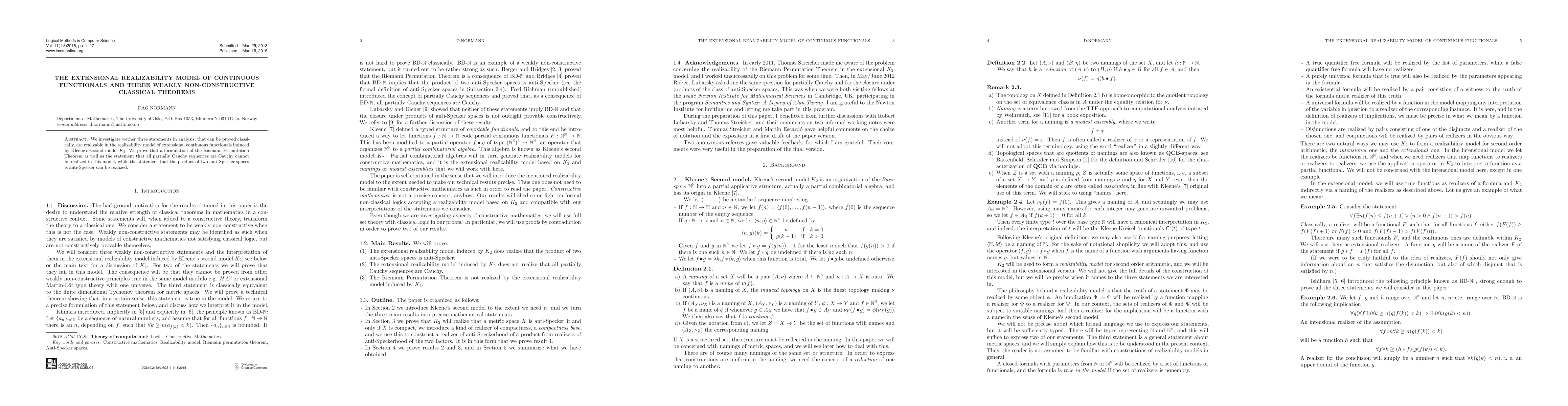 This paper investigates the realizability of three classical analysis statements in a non-constructive model of extensional continuous functionals, finding that two are not realizable but one is.