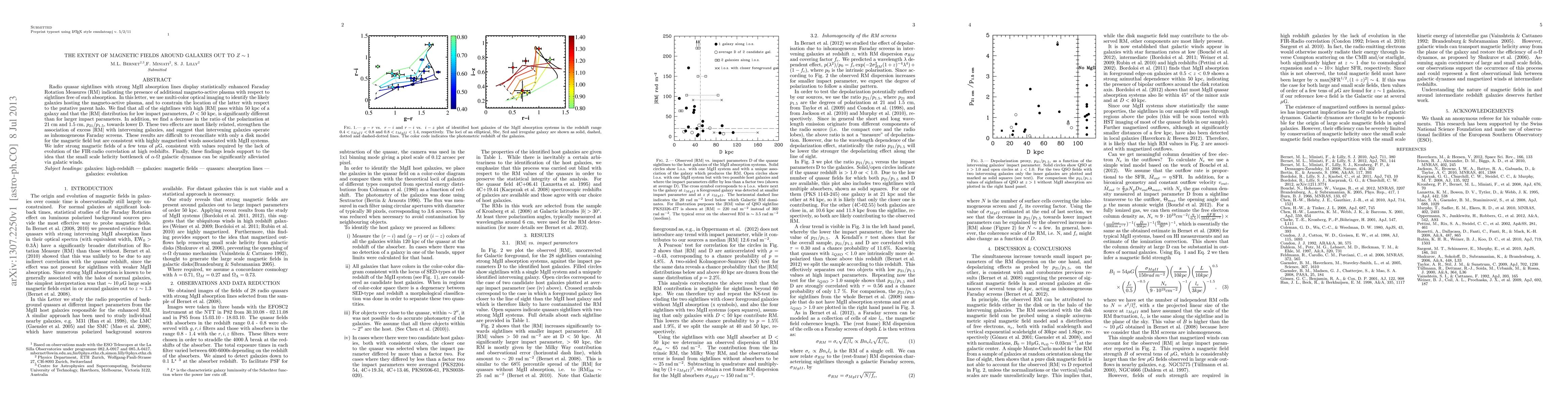 Radio quasar sightlines with strong MgII absorption lines display statistically enhanced Faraday Rotation Measures (RM) indicating the presence of additional magneto-active plasma with respect to sightlines free of such absorption. In this letter, we use multi-color optical imaging to identify the likely galaxies hosting the magneto-active plasma, and to constrain the location of the latter with respect to the putative parent halo. We find that all of the sightlines with high |RM| pass within 50 kpc of a galaxy and that the |RM| distribution for low impact parameters, D < 50 kpc, is significantly different than for larger impact parameters. In addition, we find a decrease in the ratio of the polarization at 21 cm and 1.5 cm, p_{21}/p_{1.5}, towards lower D. These two effects are most likely related, strengthen the association of excess |RM| with intervening galaxies, and suggest that intervening galaxies operate as inhomogeneous Faraday screens. These results are difficult to reconciliate with only a disk model for the magnetic field but are consistent with highly magnetized winds associated with MgII systems. We infer strong magnetic fields of a few tens of mikro Gauss, consistent with values required by the lack of evolution of the FIR-radio correlation at high redshifts. Finally, these findings lends support to the idea that the small scale helicity bottleneck of alpha-Omega galactic dynamos can be significantly alleviated via galatic winds.