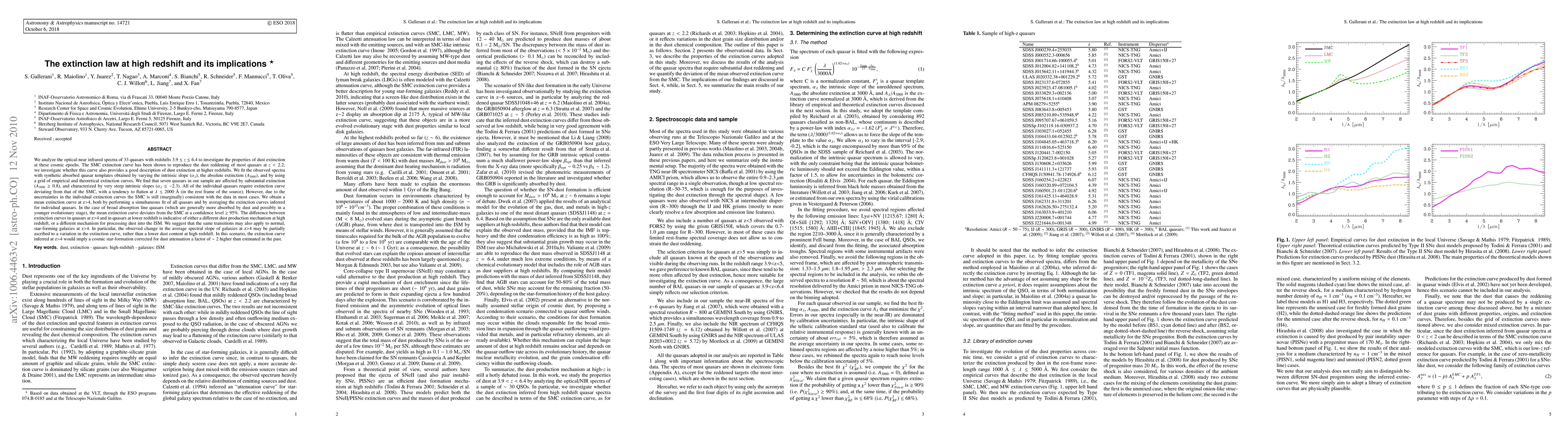 This paper investigates the dust extinction properties of 33 high-redshift quasars (3.9<z<6.4) and finds that the SMC extinction curve does not adequately describe the extinction at these redshifts. Instead, the observed extinction curves tend to flatten at shorter wavelengths, suggesting a different dust production or processing mechanism at high redshifts.