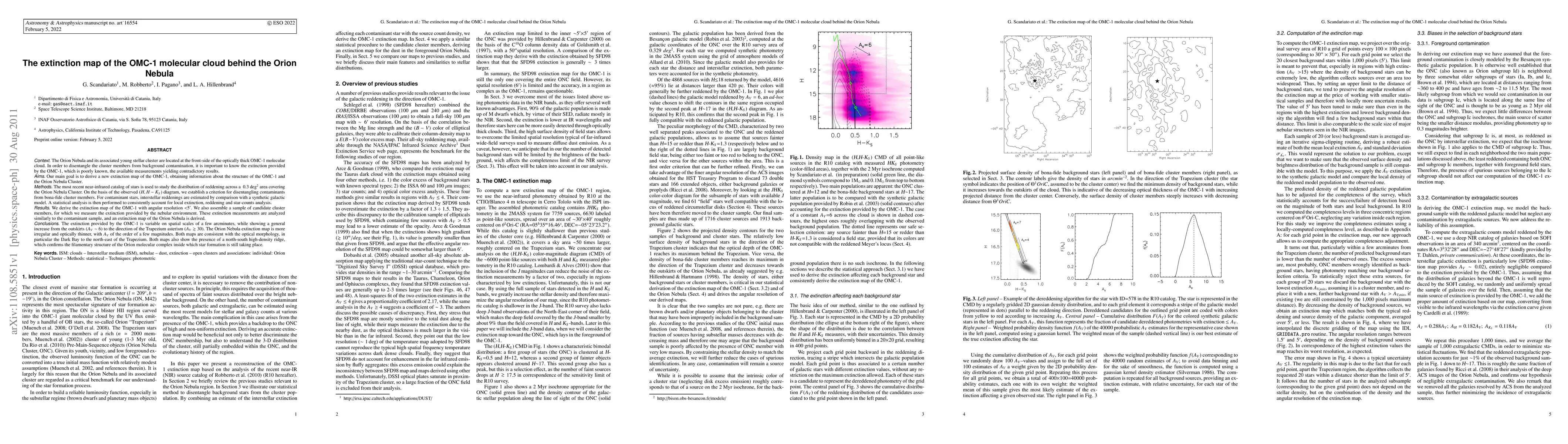 This study derives a new extinction map of the OMC-1 molecular cloud behind the Orion Nebula, revealing variable extinction across spatial scales of a few arcminutes, with higher values near the Trapezium asterism. The analysis also produces an extinction map for the Orion Nebula, showing a more irregular and thinner distribution.