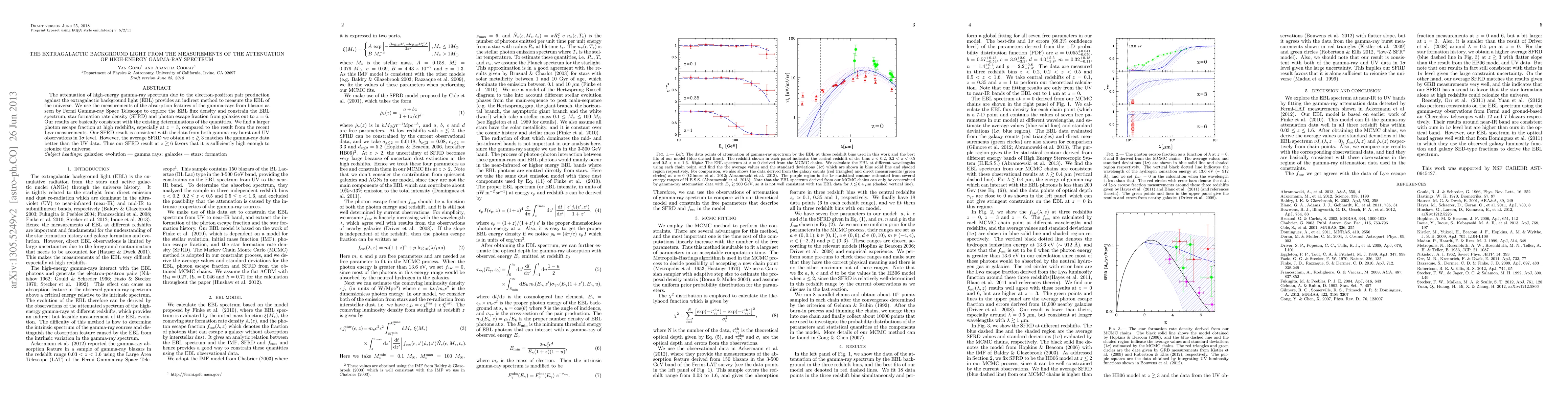 This paper uses Fermi Gamma-ray Space Telescope data to measure the extragalactic background light (EBL) via gamma-ray attenuation, finding a higher photon escape fraction at high redshifts and a star formation rate density consistent with gamma-ray and UV observations, suggesting a high enough SFRD at z>~6 to reionize the universe.