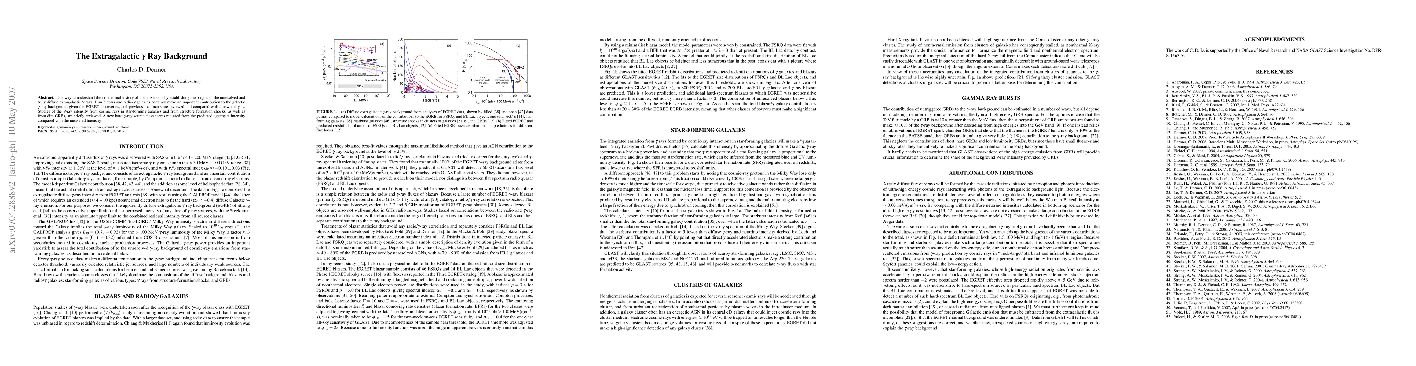 One way to understand the nonthermal history of the universe is by establishing the origins of the unresolved and truly diffuse extragalactic gamma rays. Dim blazars and radio/gamma galaxies certainly make an important contribution to the galactic gamma-ray background given the EGRET discoveries, and previous treatments are reviewed and compared with a new analysis. Studies of the gamma-ray intensity from cosmic rays in star-forming galaxies and from structure formation shocks, as well as from dim GRBs, are briefly reviewed. A new hard gamma-ray source class seems required from the predicted aggregate intensity compared with the measured intensity.