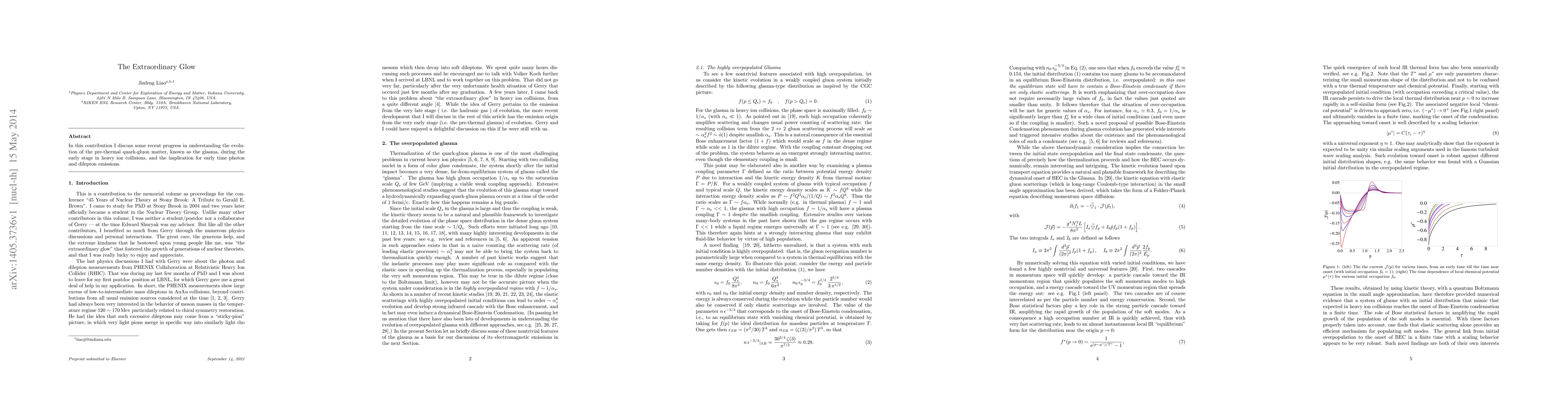 In this contribution I discuss some recent progress in understanding the evolution of the pre-thermal quark-gluon matter, known as the glasma, during the early stage in heavy ion collisions, and the implication for early time photon and dilepton emissions.