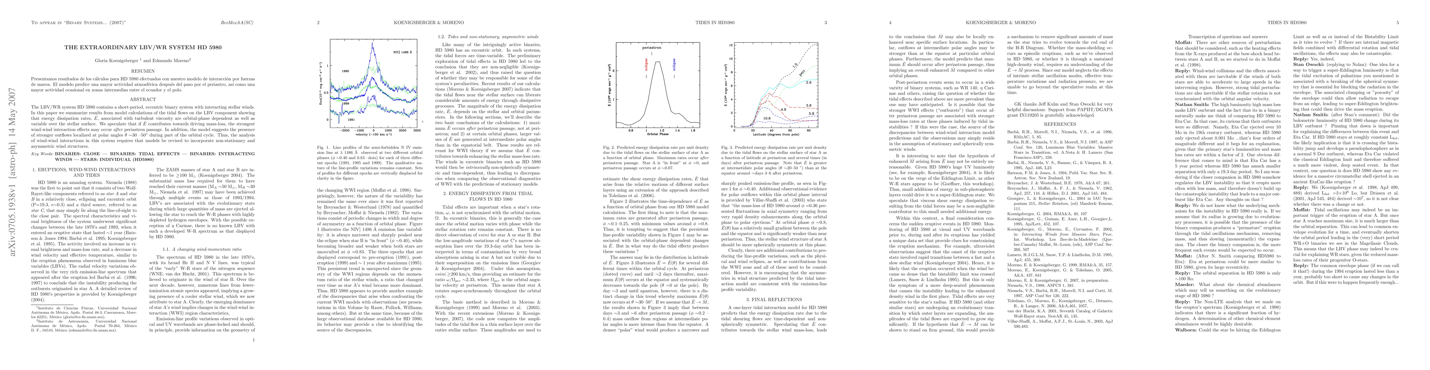 The LBV/WR system HD 5980 contains a short-period, eccentric binary system with interacting stellar winds. In this paper we summarize results from model calculations of the tidal flows on the LBV component showing that energy dissipation rates, E-dot, associated with turbulent viscosity are orbital-phase dependent as well as variable over the stellar surface. We speculate that if E-dot contributes towards driving mass-loss, the strongest wind-wind interaction effects may occur after periastron passage. In addition, the model suggests the presence of stronger outflows localized at polar angles theta~30 --50 degrees during part of the orbital cycle. Thus, the analysis of wind-wind interactions in this system requires that models be revised to incorporate non-stationary and asymmetric wind structures.