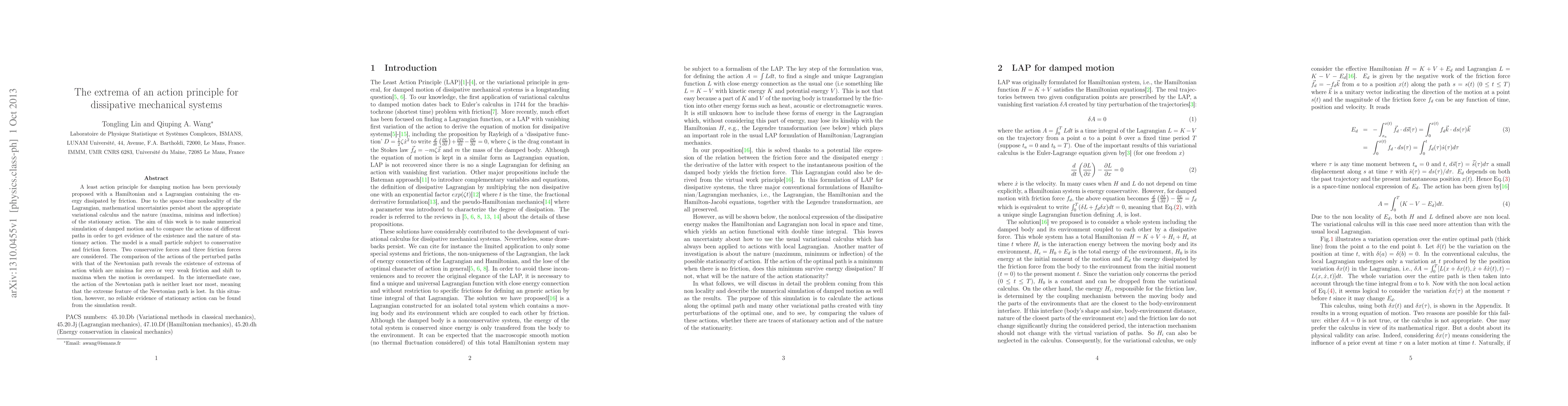Researchers found that in damped motion, the action of the Newtonian path can have minima for low friction but shift to maxima as friction increases, losing its extreme feature under intermediate damping conditions.