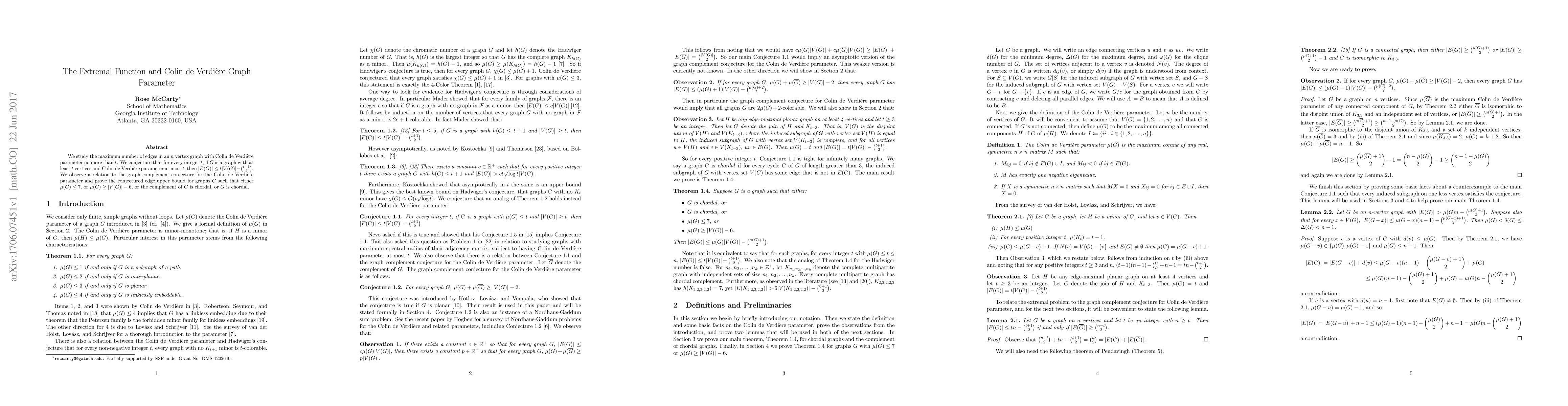 This paper explores the maximum number of edges in graphs constrained by the Colin de Verdière parameter, proposing a conjecture on the edge count and proving the conjecture for specific graph classes. The conjectured upper bound is $t|V(G)|-\binom{t+1}{2}$ edges for graphs with Colin de Verdière parameter at most $t$.