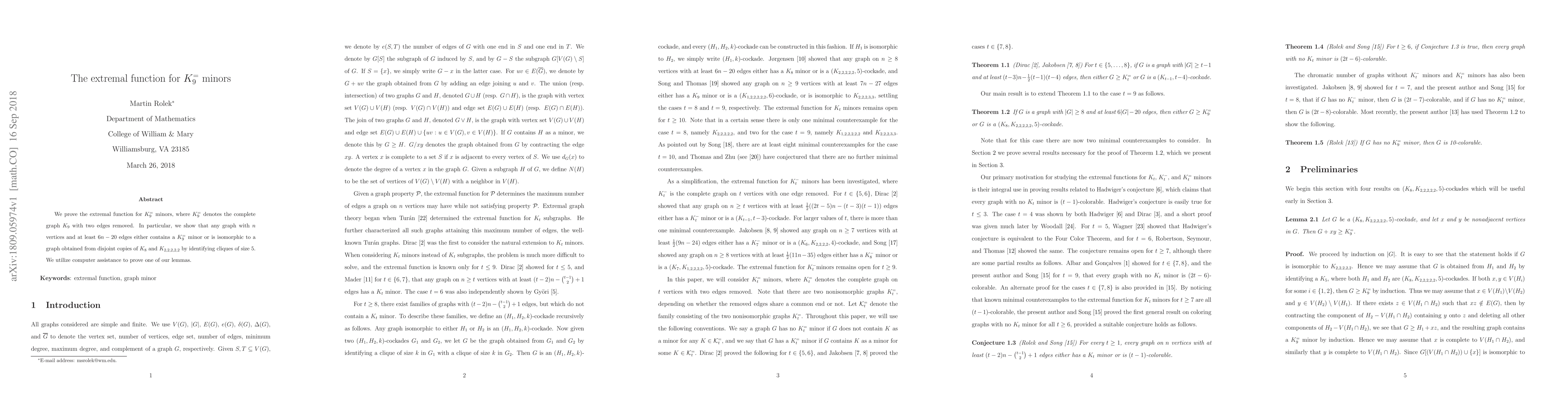 This paper proves the extremal function for graphs avoiding $K_9^=$ minors, showing that any graph with $n$ vertices and at least $6n - 20$ edges must contain a $K_9^=$ minor or be constructed from specific disjoint copies of $K_8$ and $K_{2, 2, 2, 2, 2}$ by identifying cliques of size 5. Computer assistance is used to verify one of the proofs.