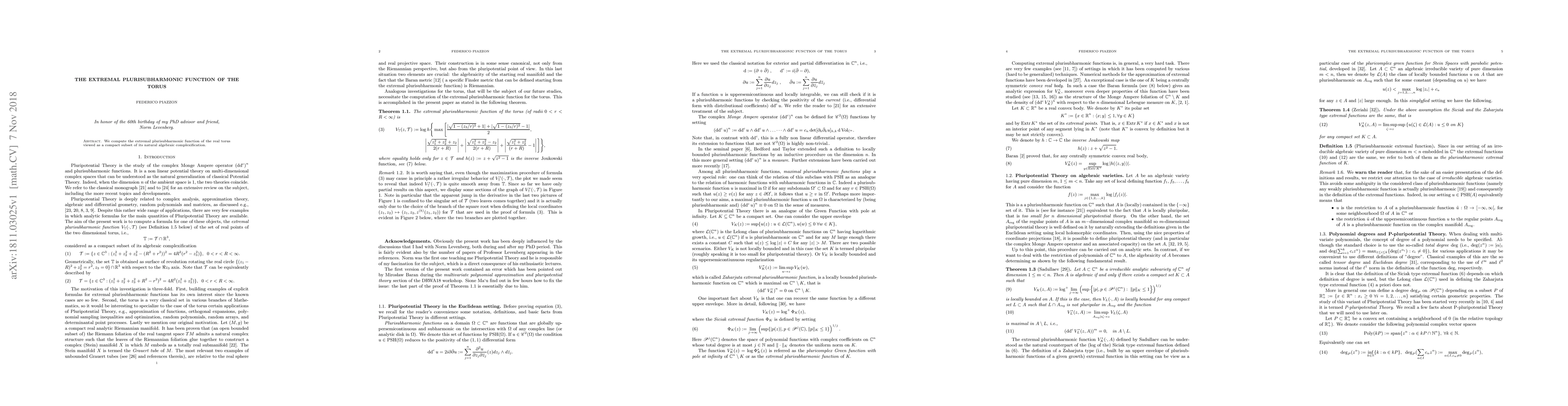 Summary: The paper computes the extremal plurisubharmonic function for the real torus embedded within its complex algebraic complexification, providing insights into its geometric and analytic properties.