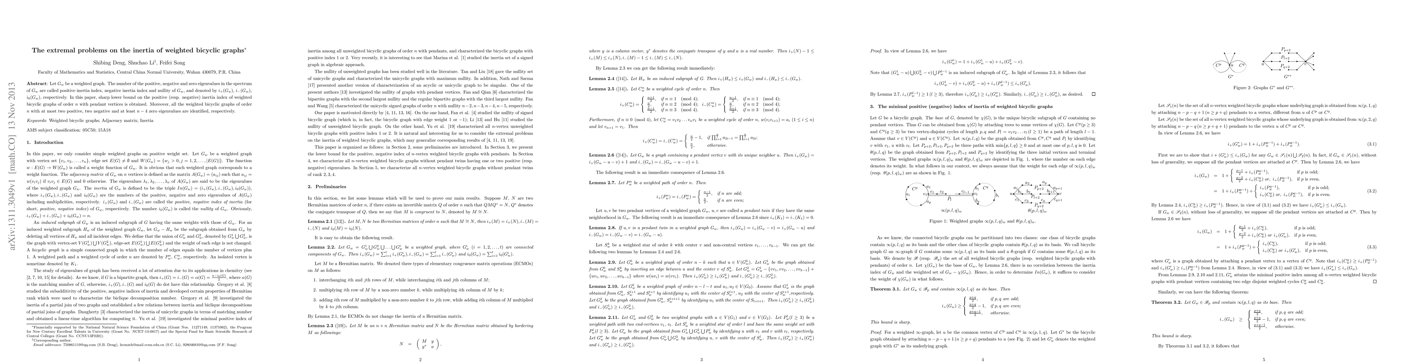 This paper establishes sharp lower bounds for the positive and negative inertia indices of weighted bicyclic graphs with pendant vertices and identifies all such graphs with specific eigenvalue distributions: at most two positive or two negative eigenvalues, and at least $n-4$ zero eigenvalues.