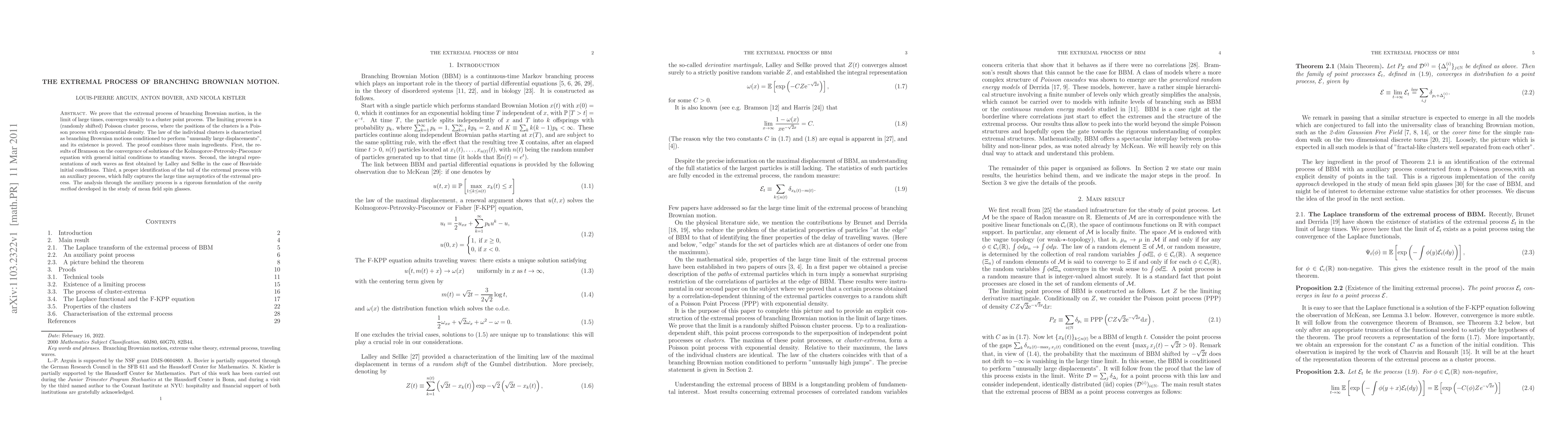 This paper demonstrates that the extremal process of branching Brownian motion converges weakly to a Poisson cluster process as time approaches infinity. The clusters are characterized by conditioned branching Brownian motions exhibiting unusually large displacements.