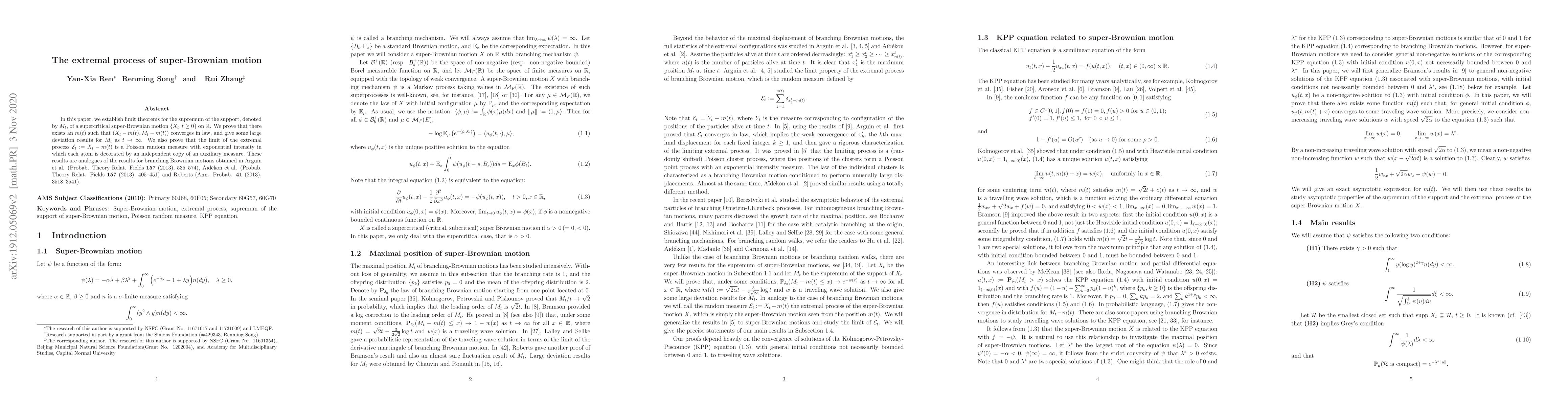 This paper establishes limit theorems for the supremum of a super-Brownian motion, showing it converges to a Poisson random measure with exponential intensity.