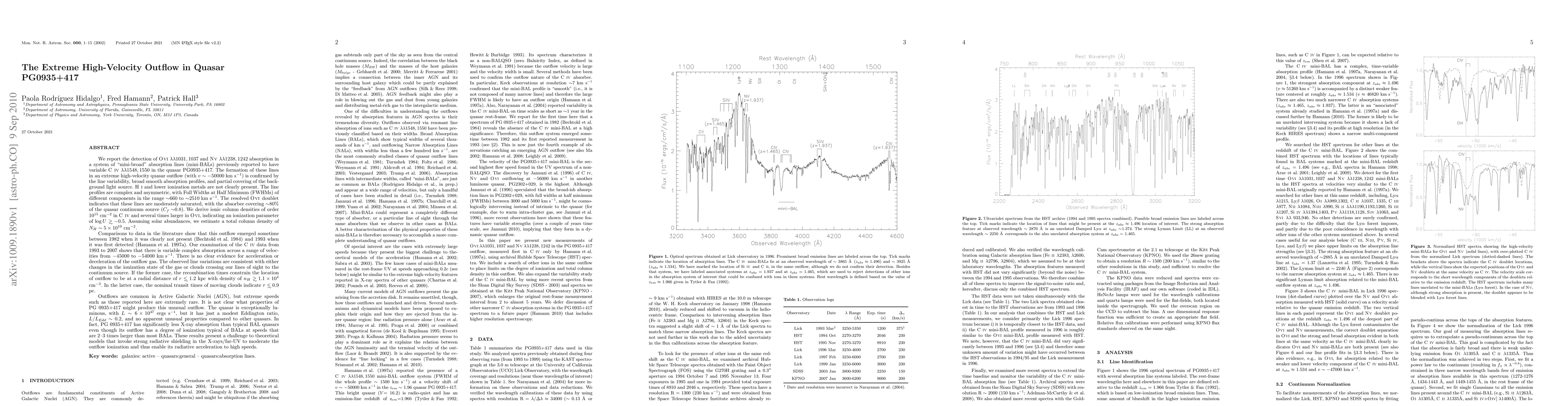 This paper reports the detection of extreme high-velocity outflows in quasar PG0935+417, characterized by OVI and NV absorption lines at speeds of ~50,000 km/s, challenging existing models of AGN outflows. The outflow's ionization and column density suggest it emerged between 1982 and 1993, with no clear evidence of acceleration or deceleration.