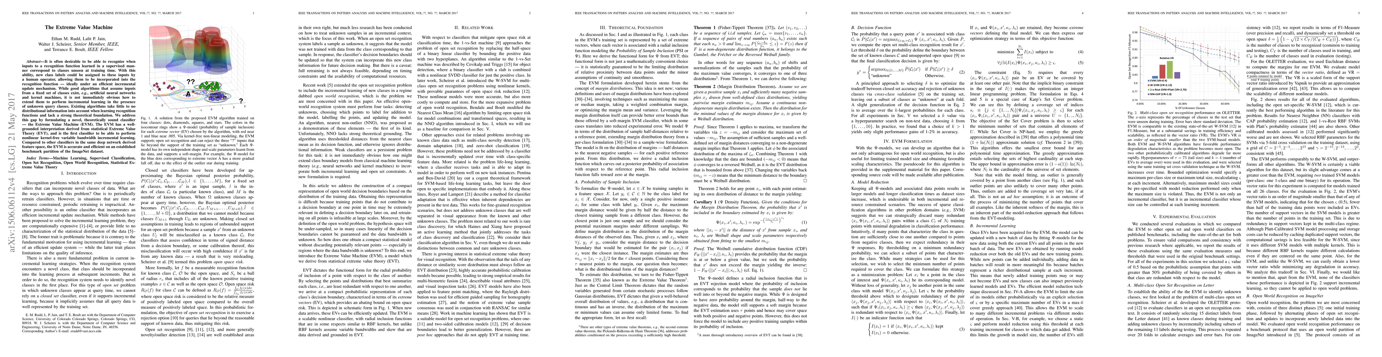 Researchers developed the Extreme Value Machine (EVM), a new classifier that can perform nonlinear kernel-free incremental learning in the presence of unknown query classes, outperforming existing algorithms on an established benchmark.