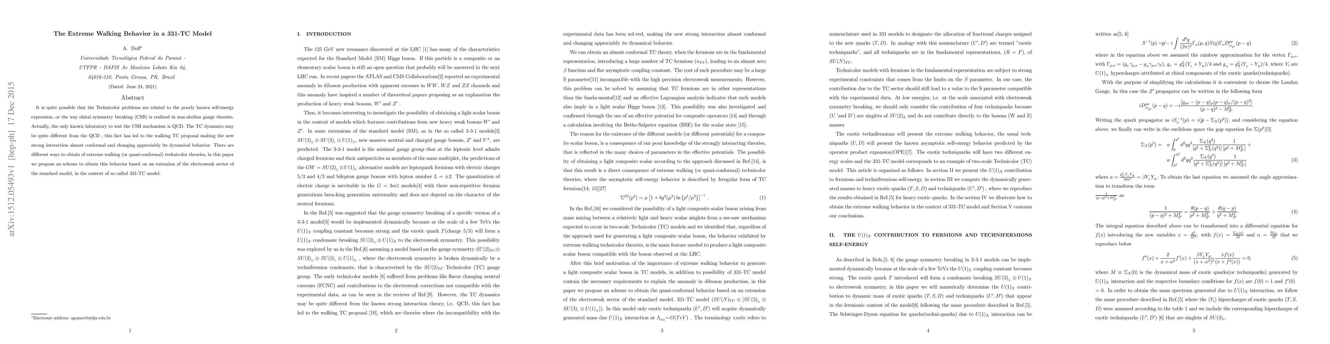This paper proposes a scheme to achieve extreme walking behavior in a 331-TC model, suggesting that Technicolor dynamics may differ from QCD and lead to a quasi-conformal strong interaction. The approach extends the electroweak sector of the Standard Model to test the mechanism of chiral symmetry breaking.
