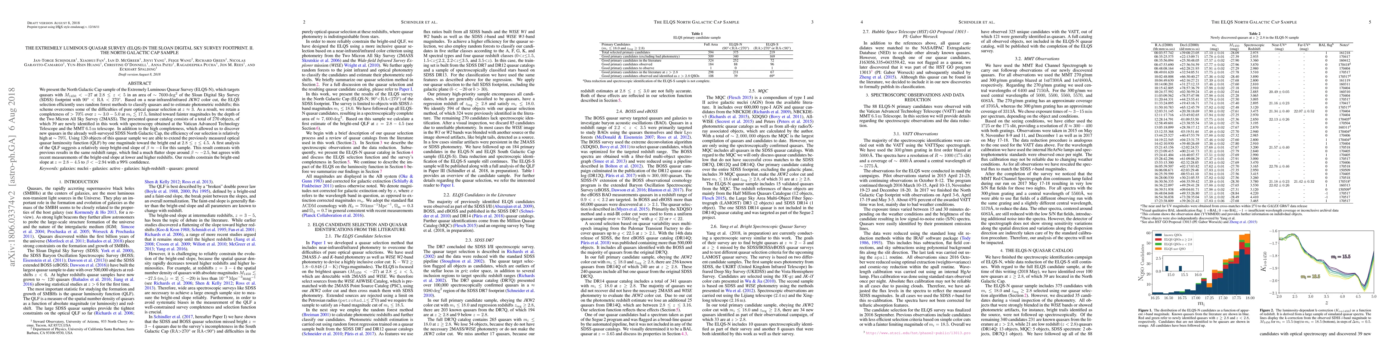 The Extremely Luminous Quasar Survey (ELQS) in the Sloan Digital Sky Survey (SDSS) footprint used near-infrared/infrared JKW2 color cut and random forest methods for quasar classification and photometric redshift estimation, targeting quasars with M1450<-27 at 2.8 ≤ z < 5 in an area of ~7600 deg^2.